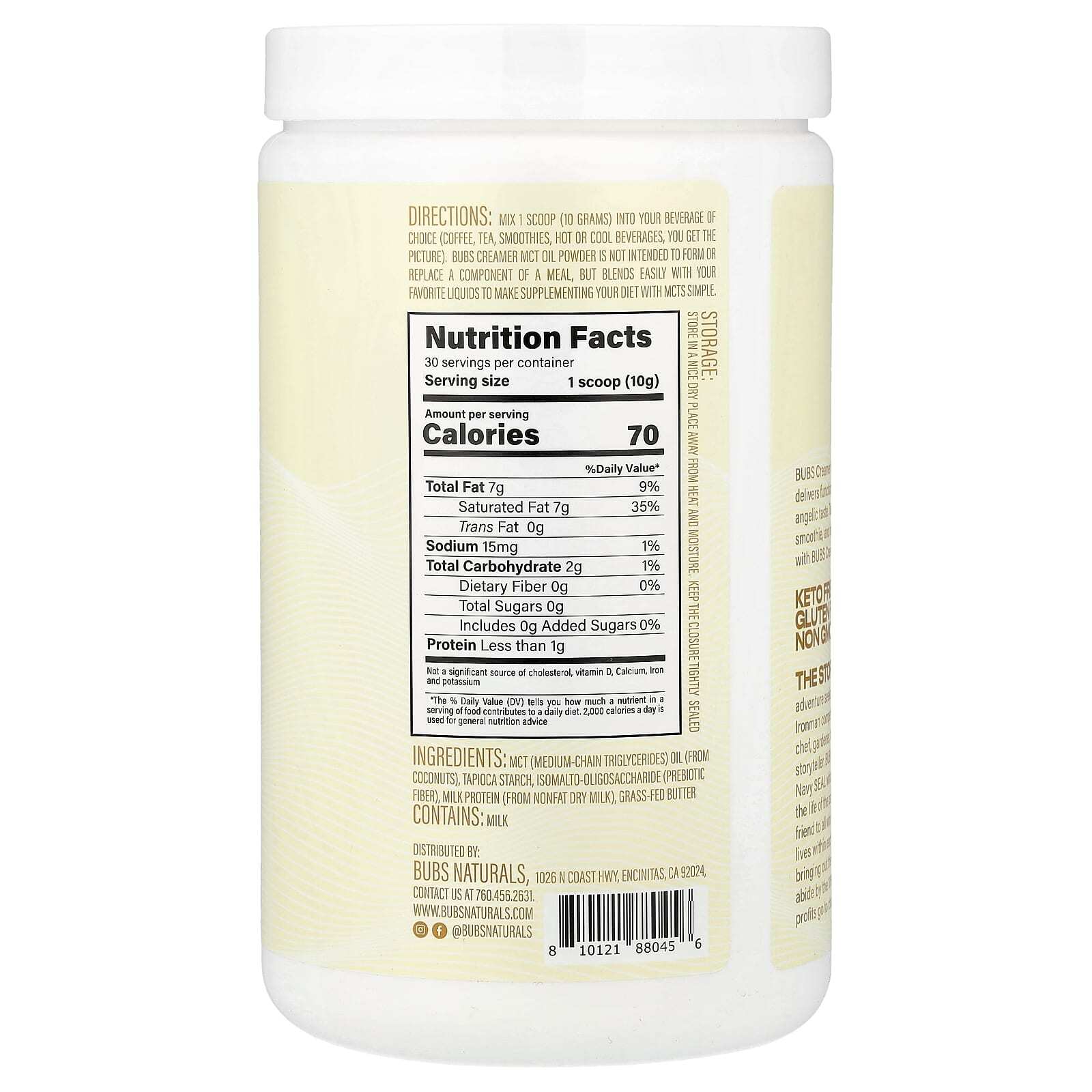 Порошок с маслом MCT от bubs Creamer обеспечивает функциональные преимущества с удивительным вкусом. Поднимите свой кофе, смузи и другие рецепты на новый уровень с помощью порошка из масла MCT от bubs Creamer!