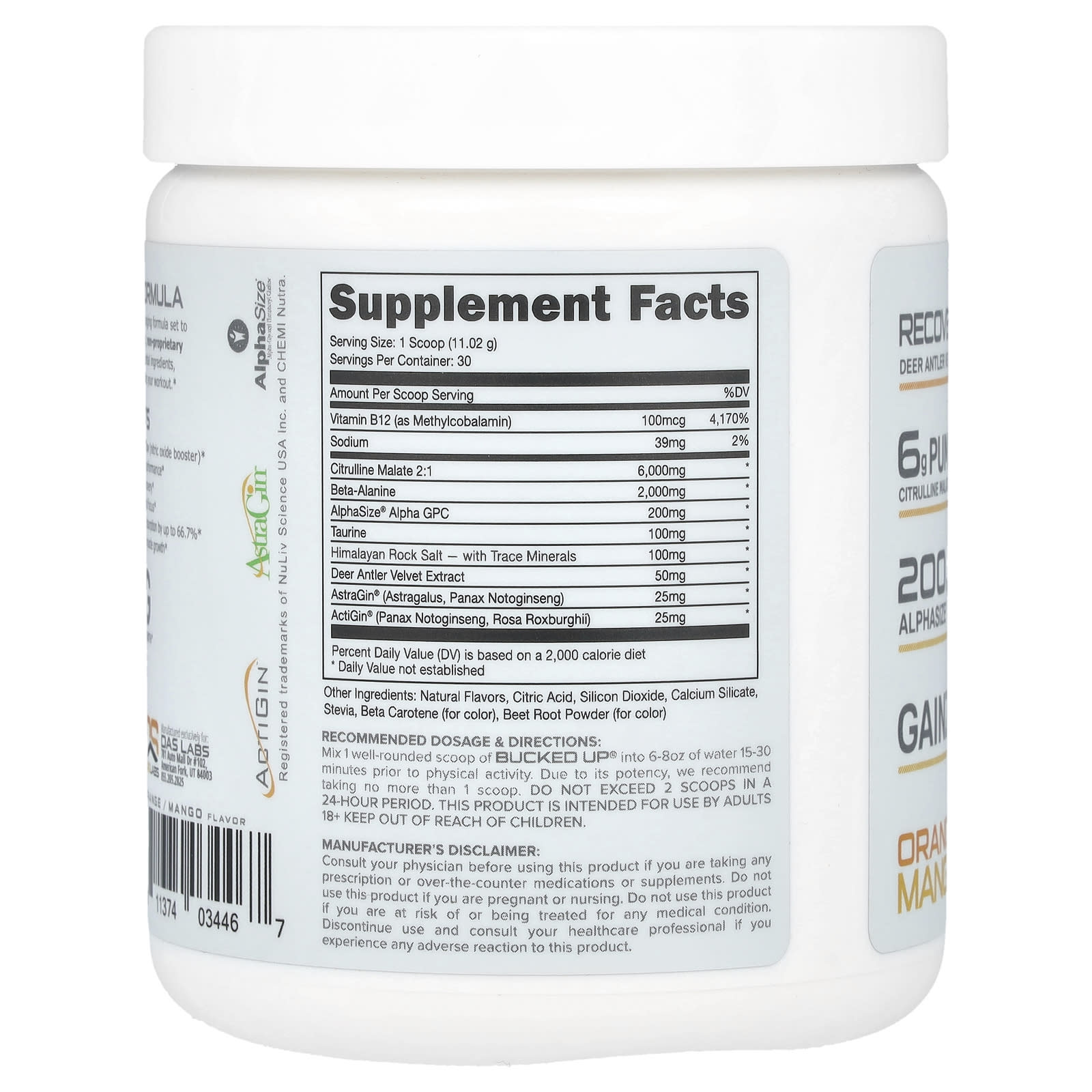 DAS LABS представляет buCKED UP® — формулу, которая меняет правила игры, а также предтренировочный комплекс. Эта незапатентованная научно обоснованная смесь без наполнителей содержит самые необходимые ингредиенты, включая бархат из оленьих рогов IGF-1, которые помогут повысить эффективность вашей тренировки.