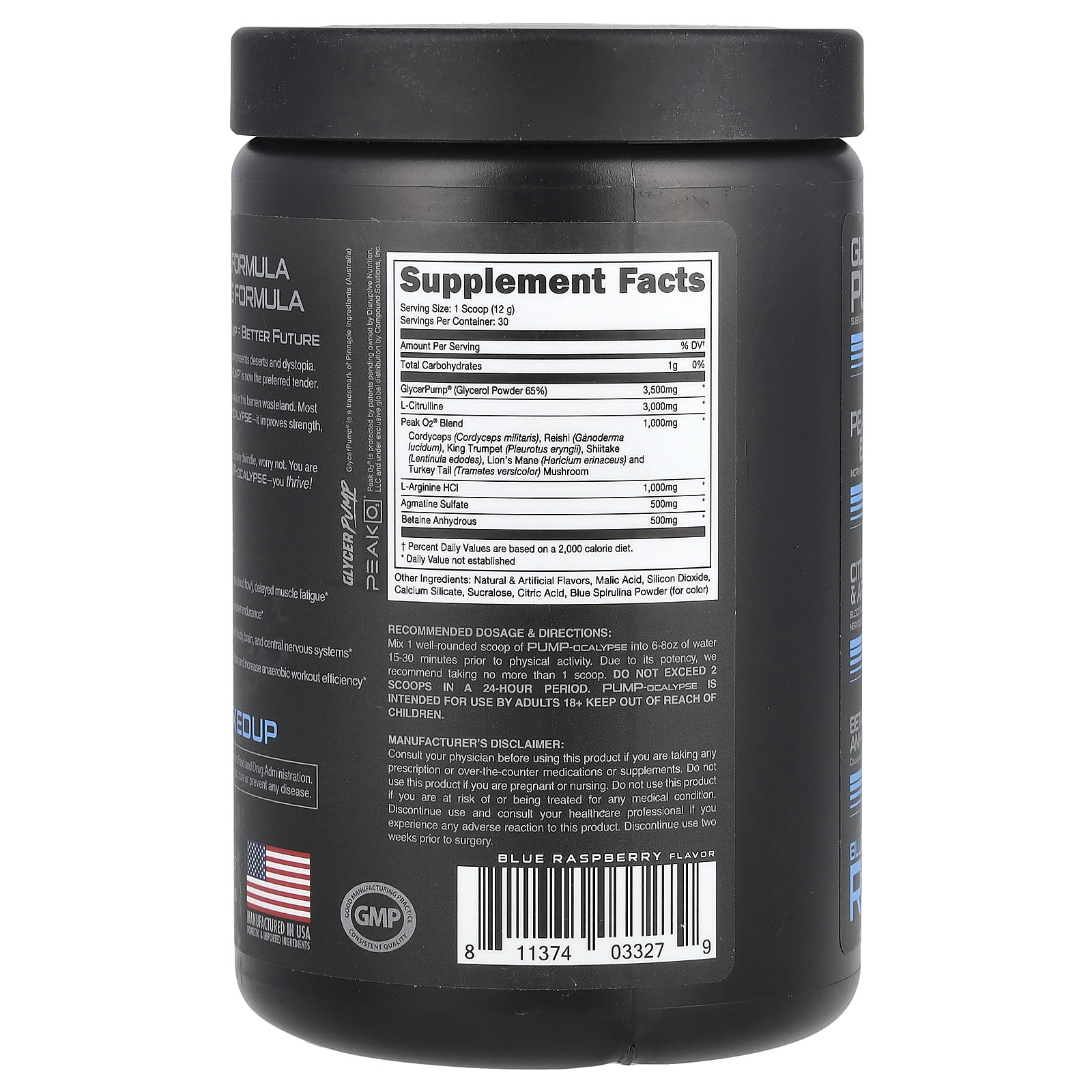 Смешайте 1 мерную ложку с горкой Pump-Ocalypse со 180–240 мл (6–8 унциями) воды за 15–30 минут до физической активности.