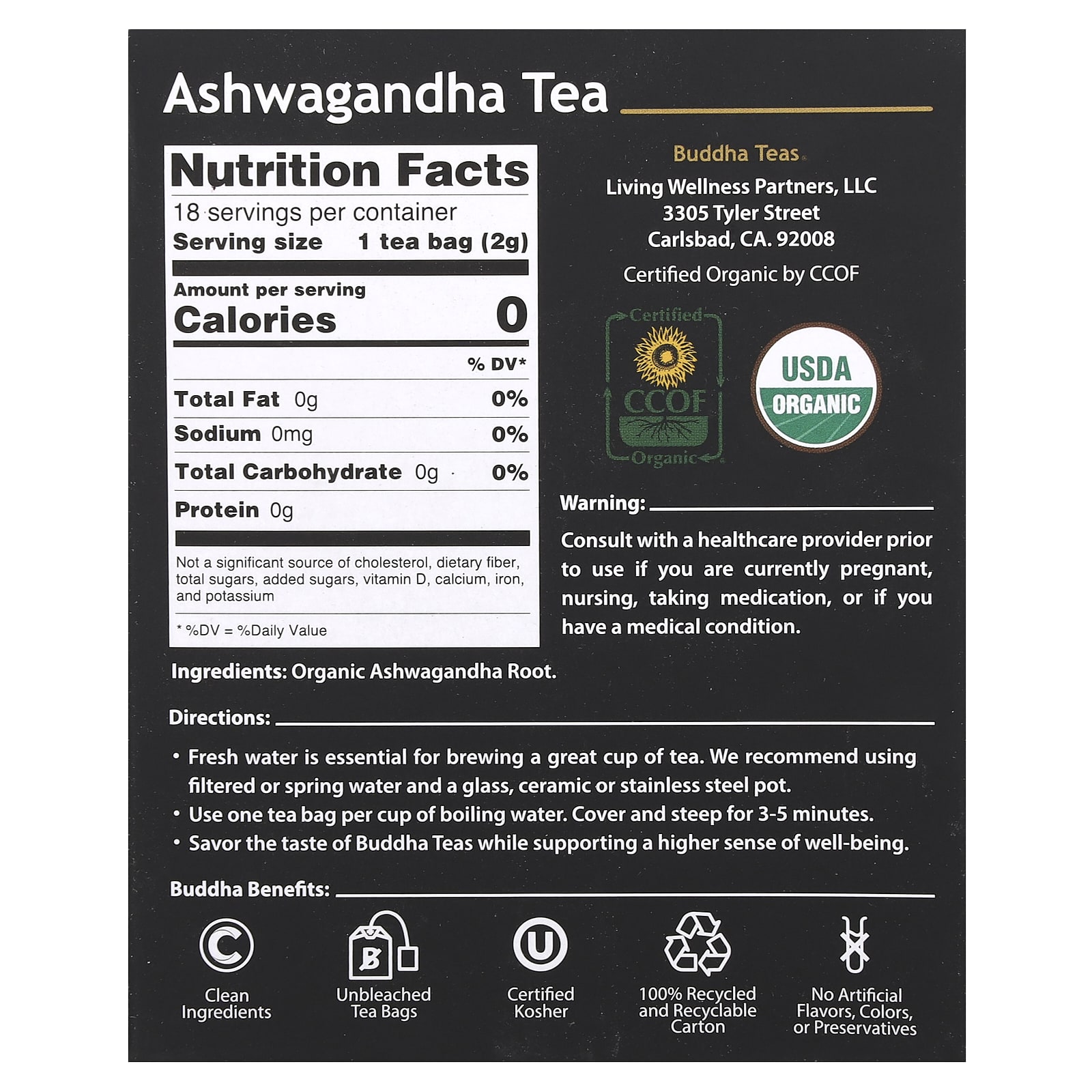 Ашваганда — лучший аюрведический адаптоген, представляющий собой соединение, которое помогает нам приспособиться к жизненным перипетиям. Ашваганда — одна из самых почитаемых трав в Индии. Чай с ашвагандой с мягким и насыщенным вкусом не содержит кофеина, и его можно принимать утром и вечером.