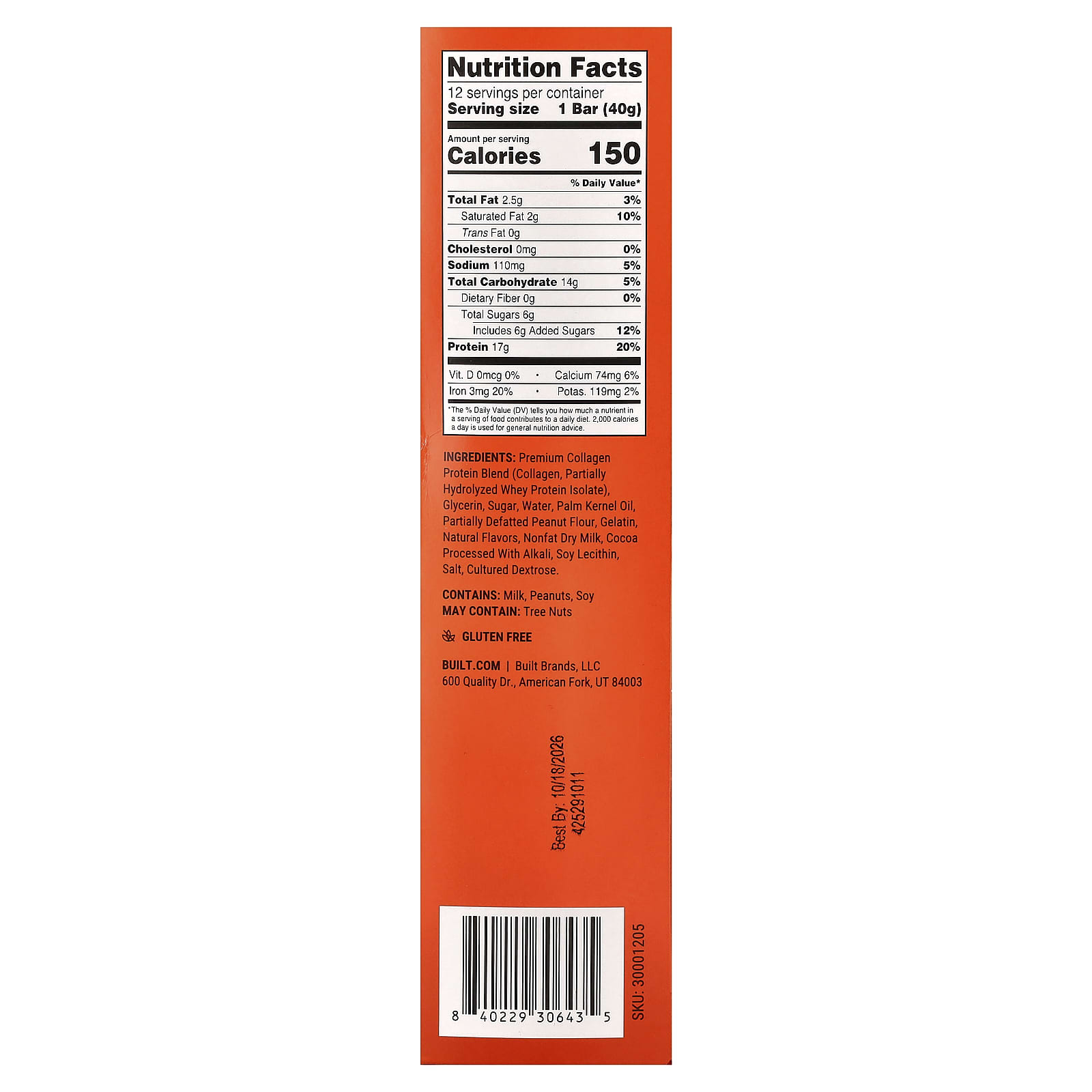 Протеиновая смесь коллагена премиального качества (коллаген, частично гидролизованный изолят сывороточного протеина), глицерин, сахар, Вода, пальмоядровое масло, частично обезжиренная арахисовая мука, желатин, натуральные ароматизаторы, обезжиренное сухое молоко, какао, обработанное щелочью, соевый лецитин, соль, выращенная декстроза.