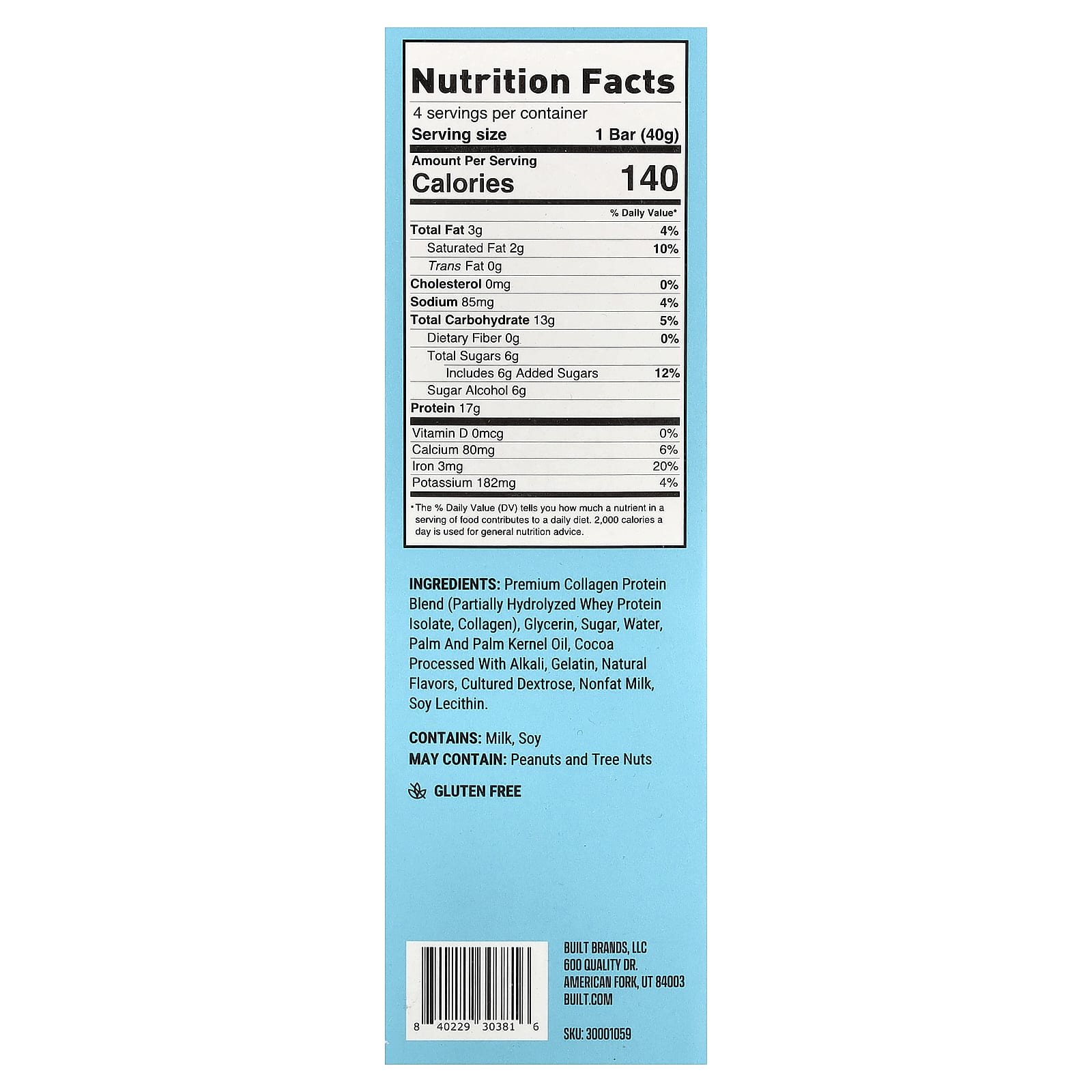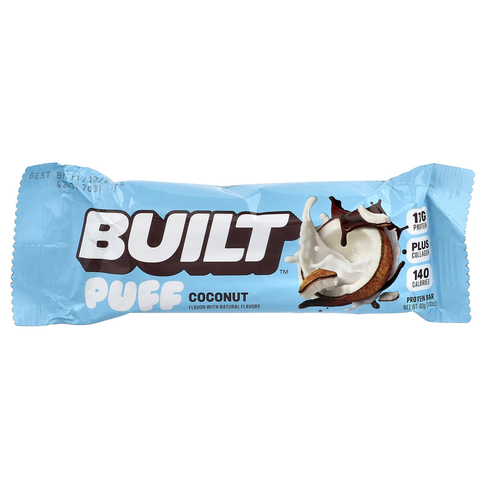 Протеиновая смесь коллагена премиального качества (частично гидролизованный изолят сывороточного протеина, коллагеном), глицерин, сахар, вода, пальмовое и пальмоядровое масло, обработанное щелочью какао, желатина, натуральные ароматизаторы, выращенная декстроза, обезжиренное молоко, лецитин из сои.