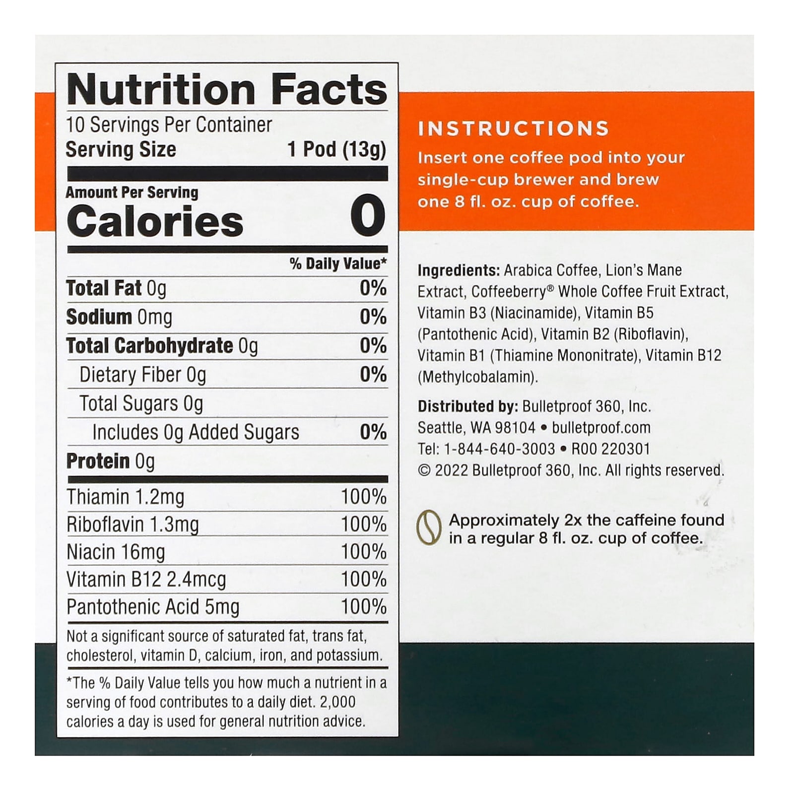 Содержит примерно в 2 раза больше кофеина, чем в обычной 8 жидк. унция чашки кофе.