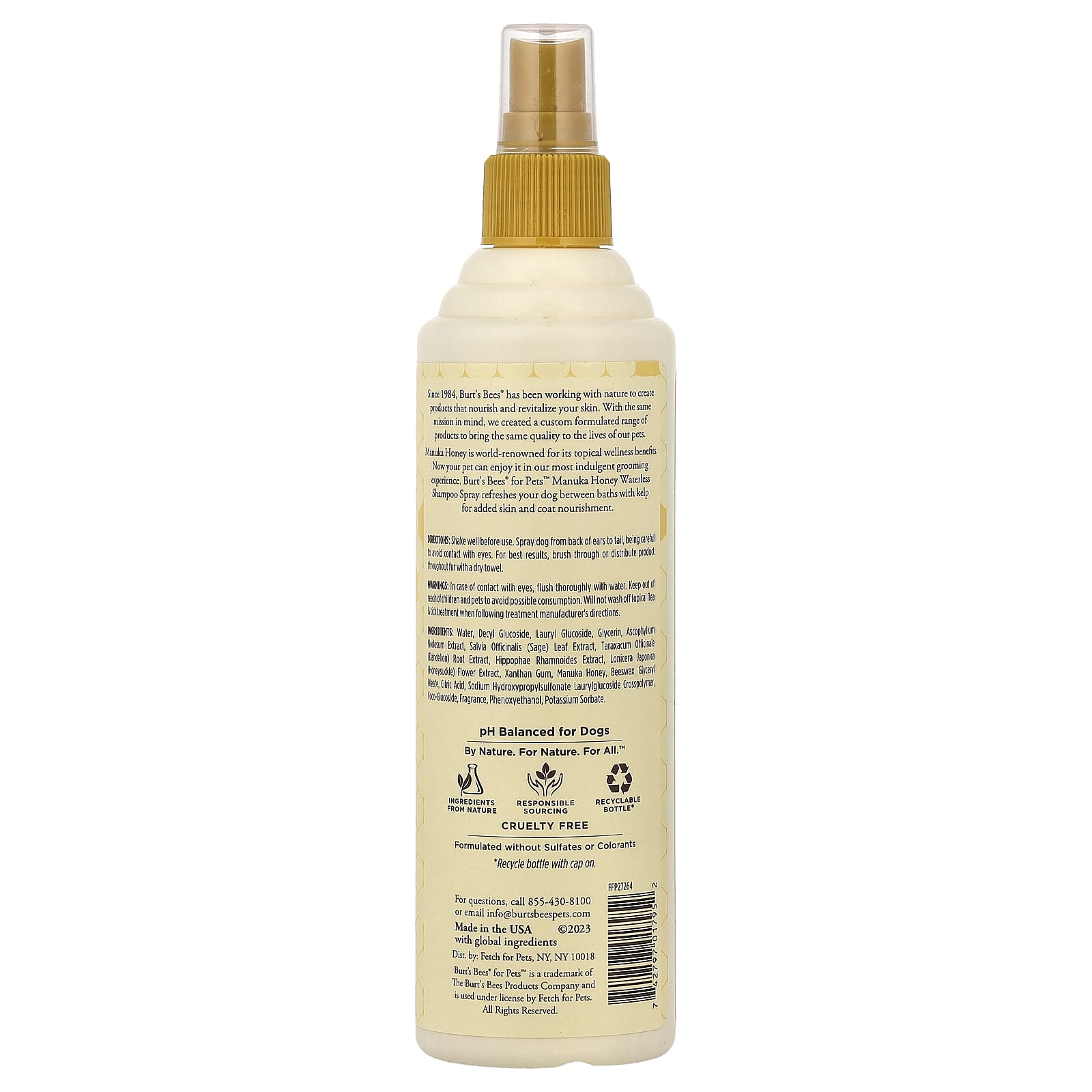 Мед манука всемирно известен своими полезными свойствами для местного применения. Теперь ваш питомец может наслаждаться нашими самыми приятными средствами для ухода. Несмываемый шампунь-спрей с медом манука от Burt's Bees® for Pets™ освежает вашу собаку между купаниями и содержит бурые водоросли, дополнительно питая кожу и шерсть.