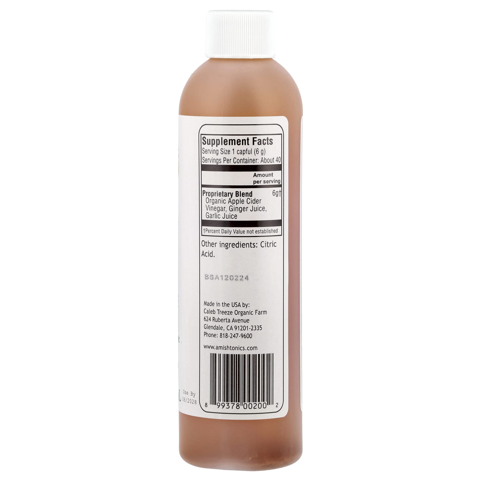 Изготовлено из сертифицированного органического яблочного уксуса и полностью натурального сока имбиря и чеснока.