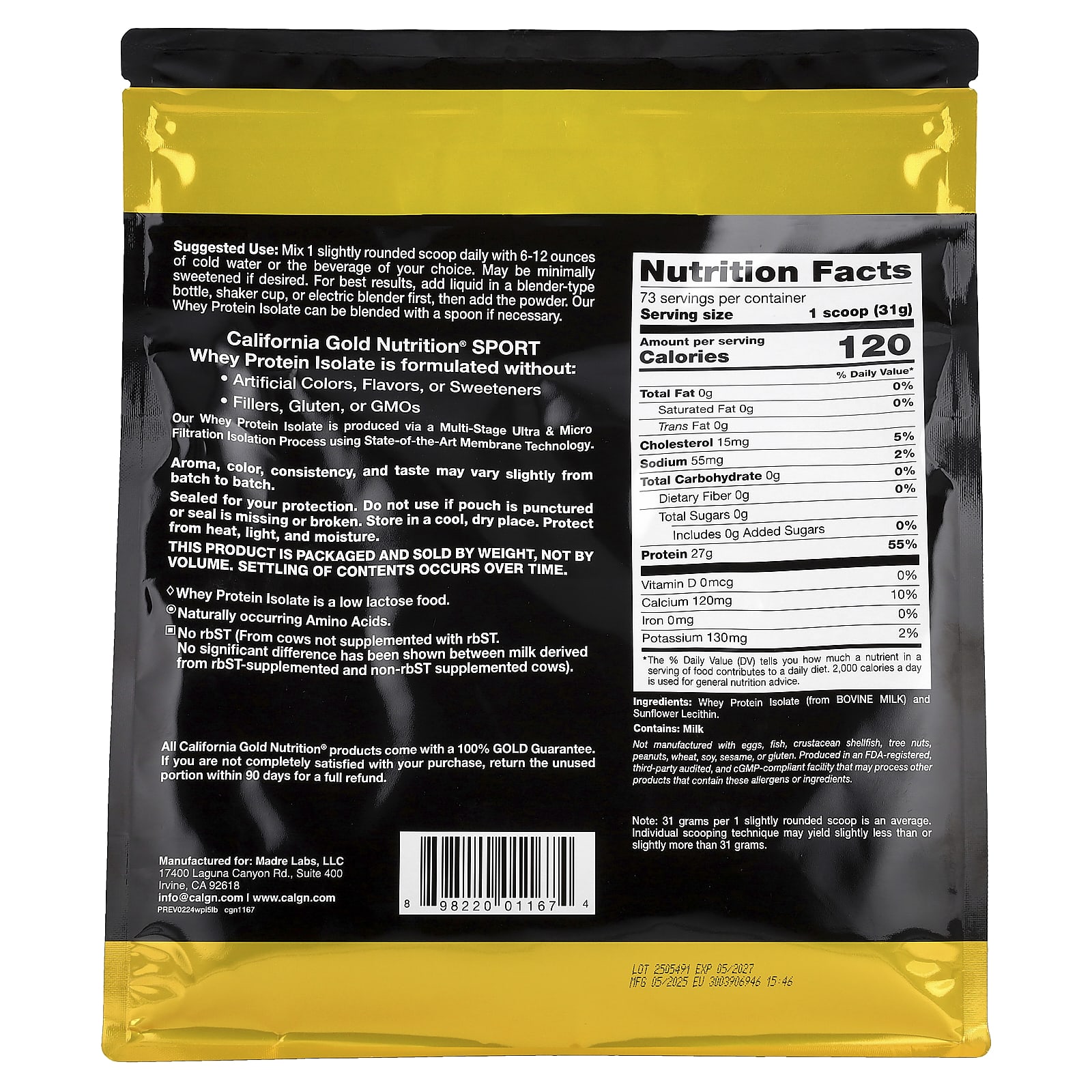 - Изолят сывороточного протеина от California Gold Nutrition Sport, 2,27 кг (5 фунтов)