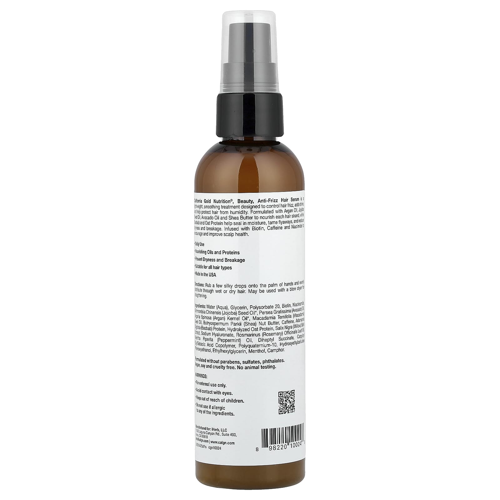 Сыворотка для волос против пушения от California Gold Nutrition® Beauty — это лёгкое разглаживающее средство, предназначенное для контроля пушения, придания блеска и защиты волос от повышенной влажности. Содержит аргановое масло, масла семян жожоба, авокадо и ши для питания каждой пряди волос, а баобаб и протеин овса помогают удерживать влагу, делают волосы более послушными, а также уменьшают сухость и ломкость. Содержит биотин, кофеин и никотинамид для улучшения здоровья кожи головы.
