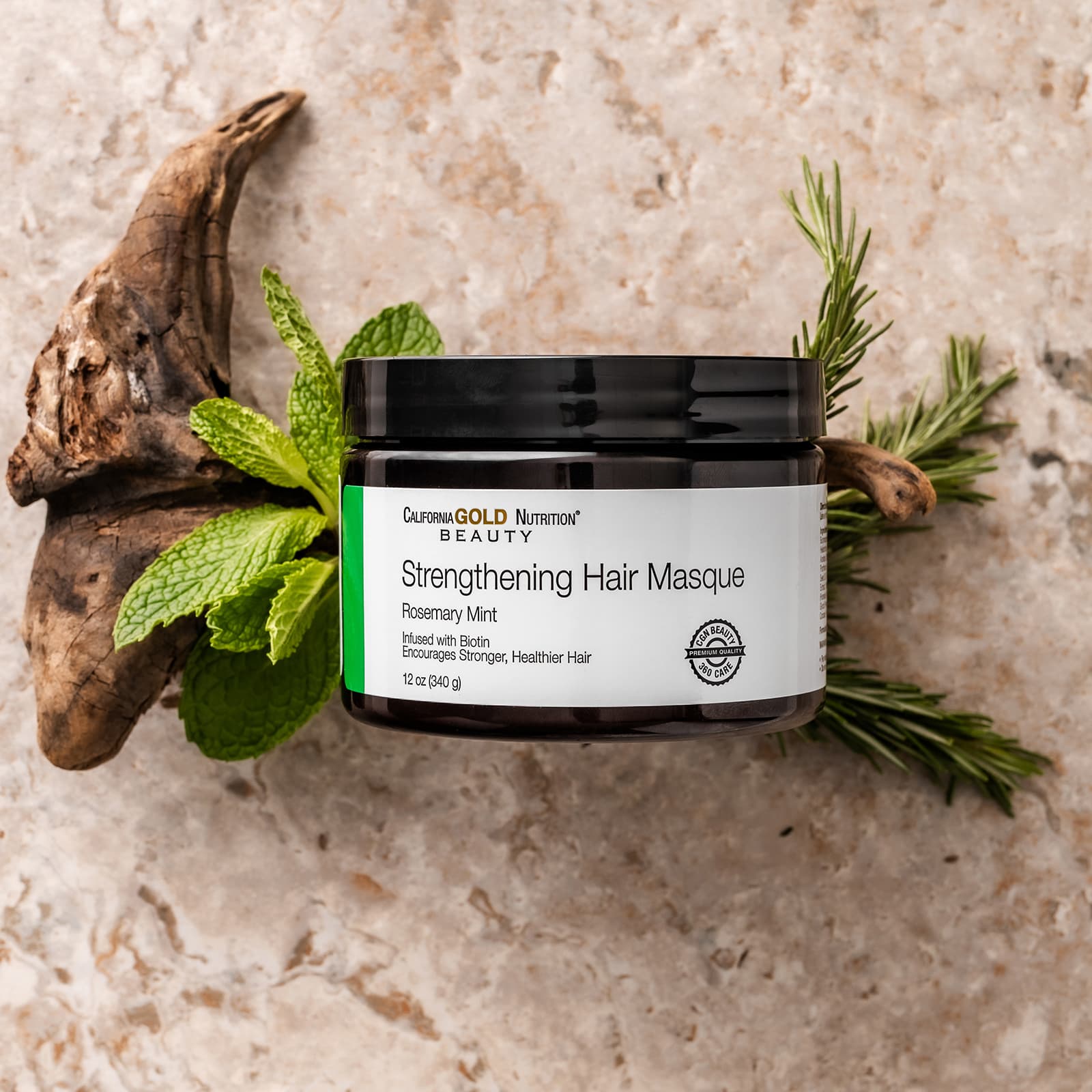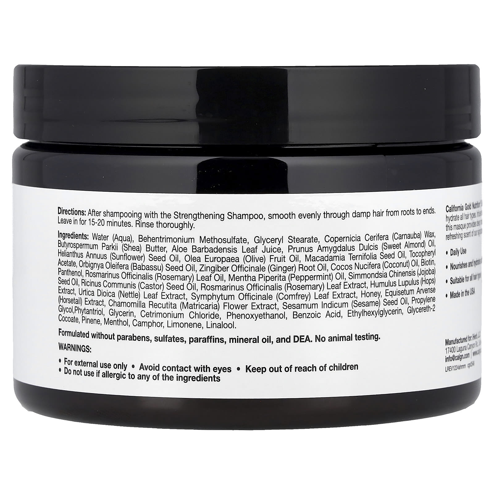 Укрепляющая маска для волос California Gold Nutrition® Beauty — это роскошное средство, созданное для питания и увлажнения всех типов волос. Эта маска, богатая смесью таких ингредиентов, как биотин, розмарин, кунжутное масло, мёд и кокосовое масло, обеспечивает глубокое увлажнение и улучшает внешний вид волос в целом, освежая и оживляя их. Наслаждайтесь освежающим ароматом нашей фирменной смеси розмарина и мяты при каждом использовании.