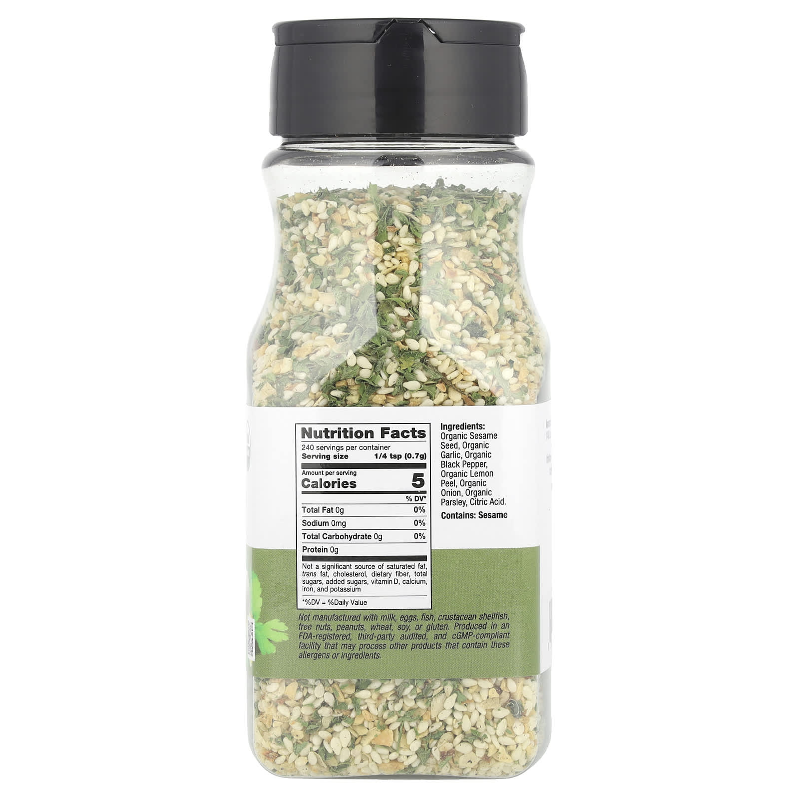 органические семена кунжута, Органический чеснок., органический черный перец, Цедра органического лимона, Органический лук, Органическая петрушка, лимонная кислота.