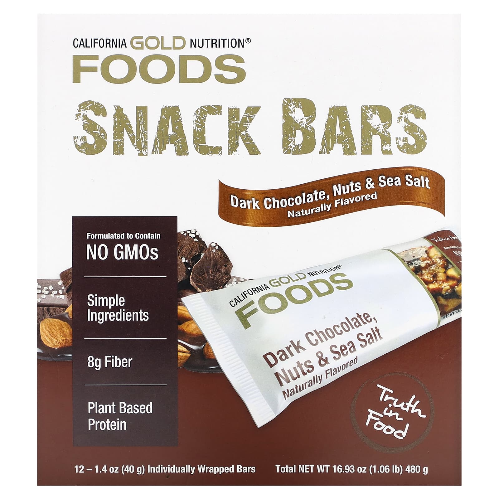 Батончики с темным шоколадом, орехами и морской солью California Gold Nutrition изготовлены из простых ингредиентов: обжаренного миндаля, арахиса и грецких орехов и являются питательным и сытным лакомством с большим количеством клетчатки и белка. Батончики в индивидуальной упаковке идеальны для перекуса на ходу, в любое время и в любом месте.
