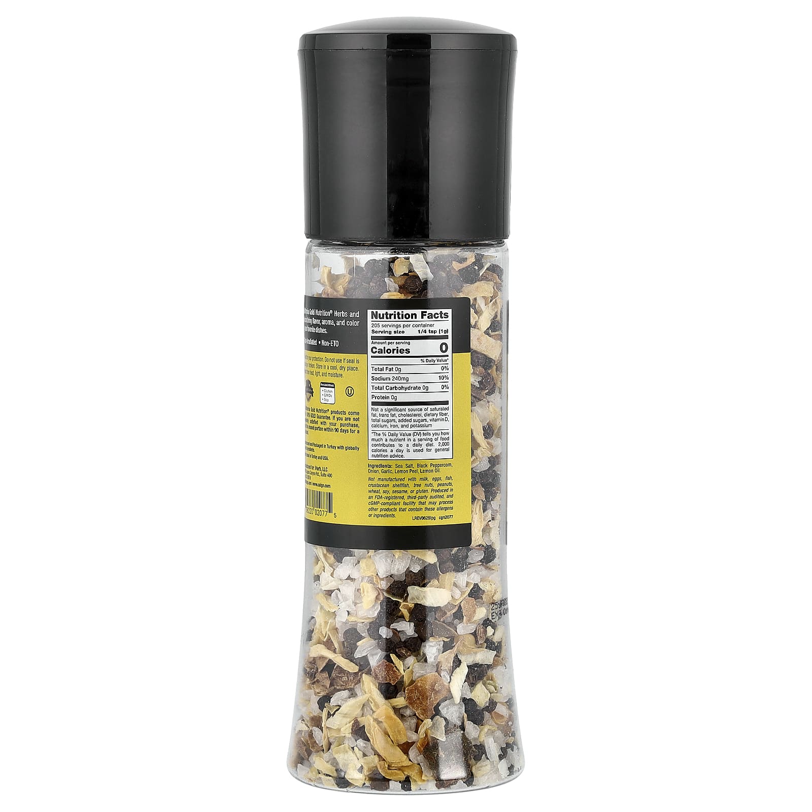 Соль с лимоном и перцем в мельнице от California Gold Nutrition® Foods объединяет насыщенные цитрусовые нотки лимона и пряную остроту перца, чтобы оживить вкус ваших любимых пикантных блюд. Измельчите эти специи непосредственно перед подачей блюда, чтобы добавить взрыв вкуса вашему кулинарному шедевру.