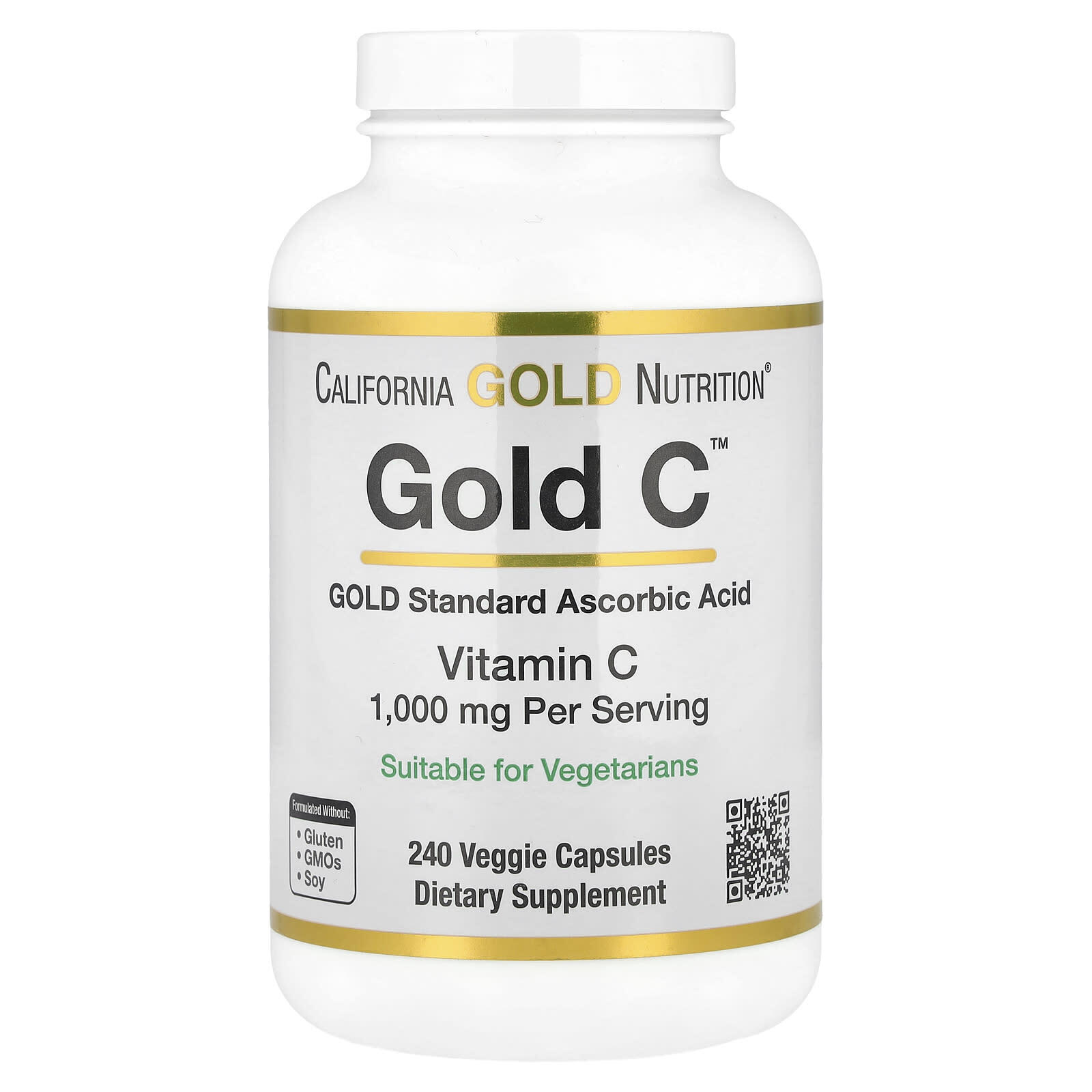 Витамин C Gold C™ от California Gold Nutrition содержит витамин C класса USP (в виде аскорбиновой кислоты) в вегетарианских капсулах. Эта добавка подходит для вегетарианцев и не содержит глютена, ГМО и сои.