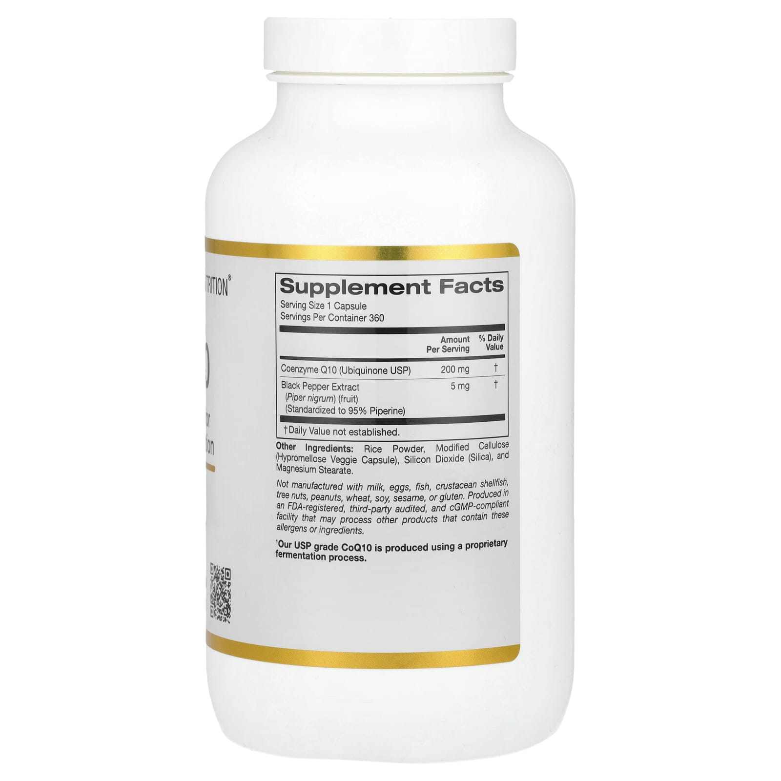 California Gold Nutrition, коэнзим Q10 с экстрактом чёрного перца Bioperine®, 200 мг, 360 растительных капсул