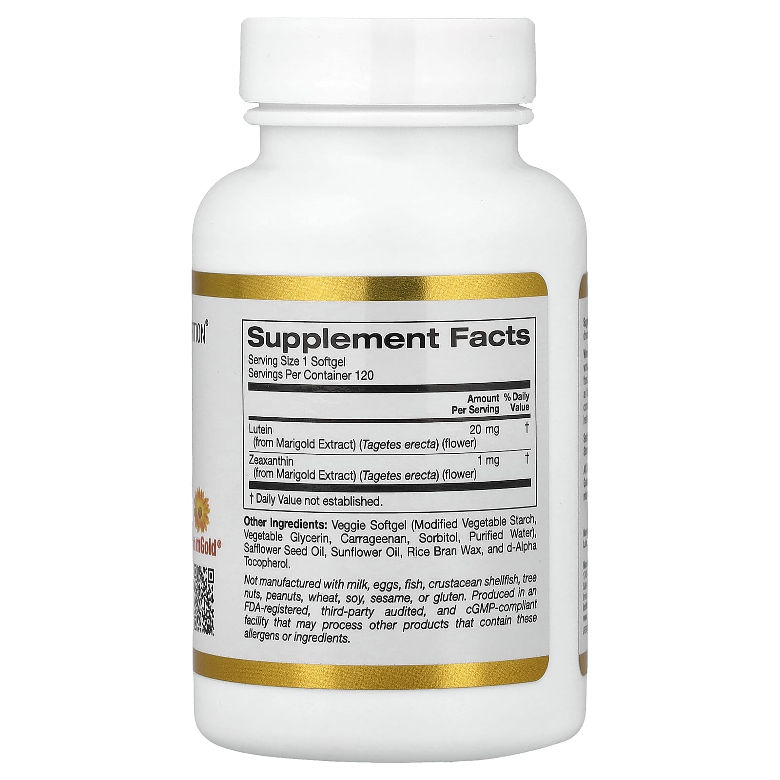 Лютеин с зеаксантином (20 мг) от California Gold Nutrition® изготовлен на основе экстракта бархатцев mGold™, полученного из цветков бархатцев мелкоцветных (Tagetes erecta), и содержит антиоксидантные каротиноиды лютеин и зеаксантин.