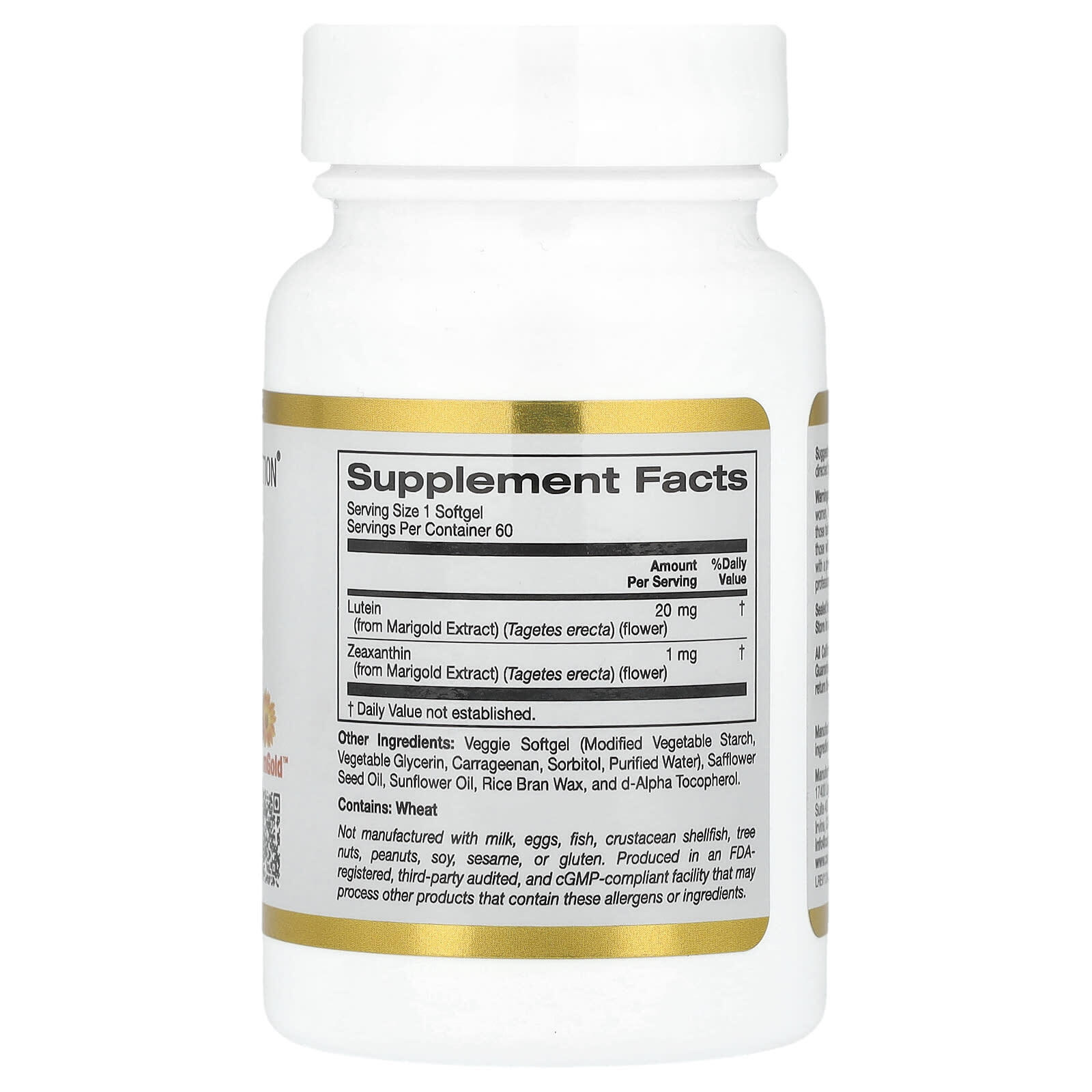 Лютеин с зеаксантином (20 мг) от California Gold Nutrition® изготовлен на основе экстракта бархатцев mGold™, полученного из цветков бархатцев мелкоцветных (Tagetes erecta), и содержит антиоксидантные каротиноиды лютеин и зеаксантин.