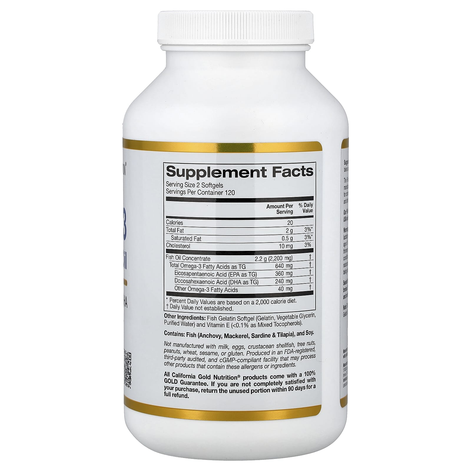 California Gold Nutrition, омега-3, рыбий жир премиального качества, 240 капсул из рыбьего желатина