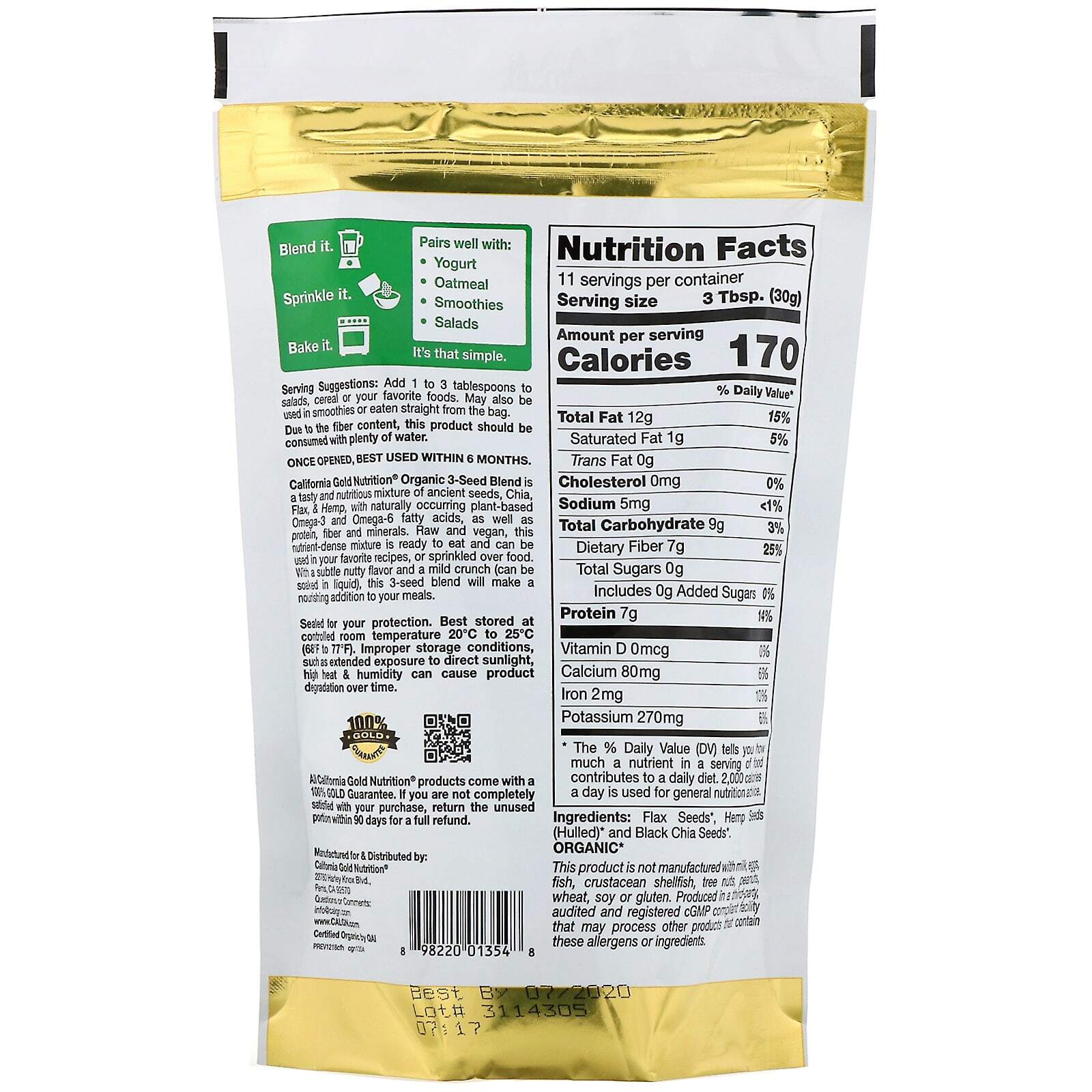 - Органическая смесь из 3 видов семян от California Gold Nutrition Foods