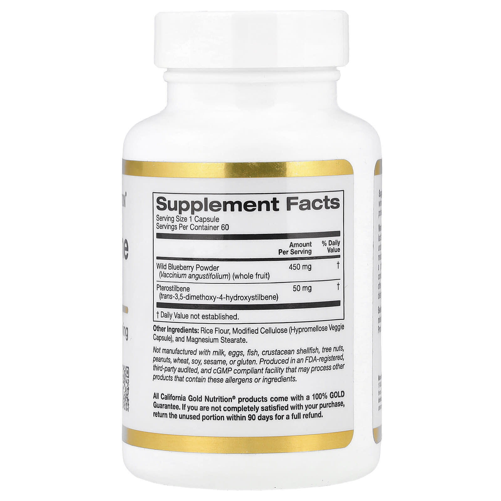 Почувствуйте преимущества комплекса Птеростильбен плюс от California Gold Nutrition®, содержащего 50 мг высококачественного птеростильбена (транс-3, 5-диметокси-4-гидроксистильбен) в сочетании с 450 мг эффективного порошка из плодов лесной голубики (Vaccinium angustifolium). Эта тщательно продуманная смесь сочетает в себе два ингредиента для поддержки общего здоровья.