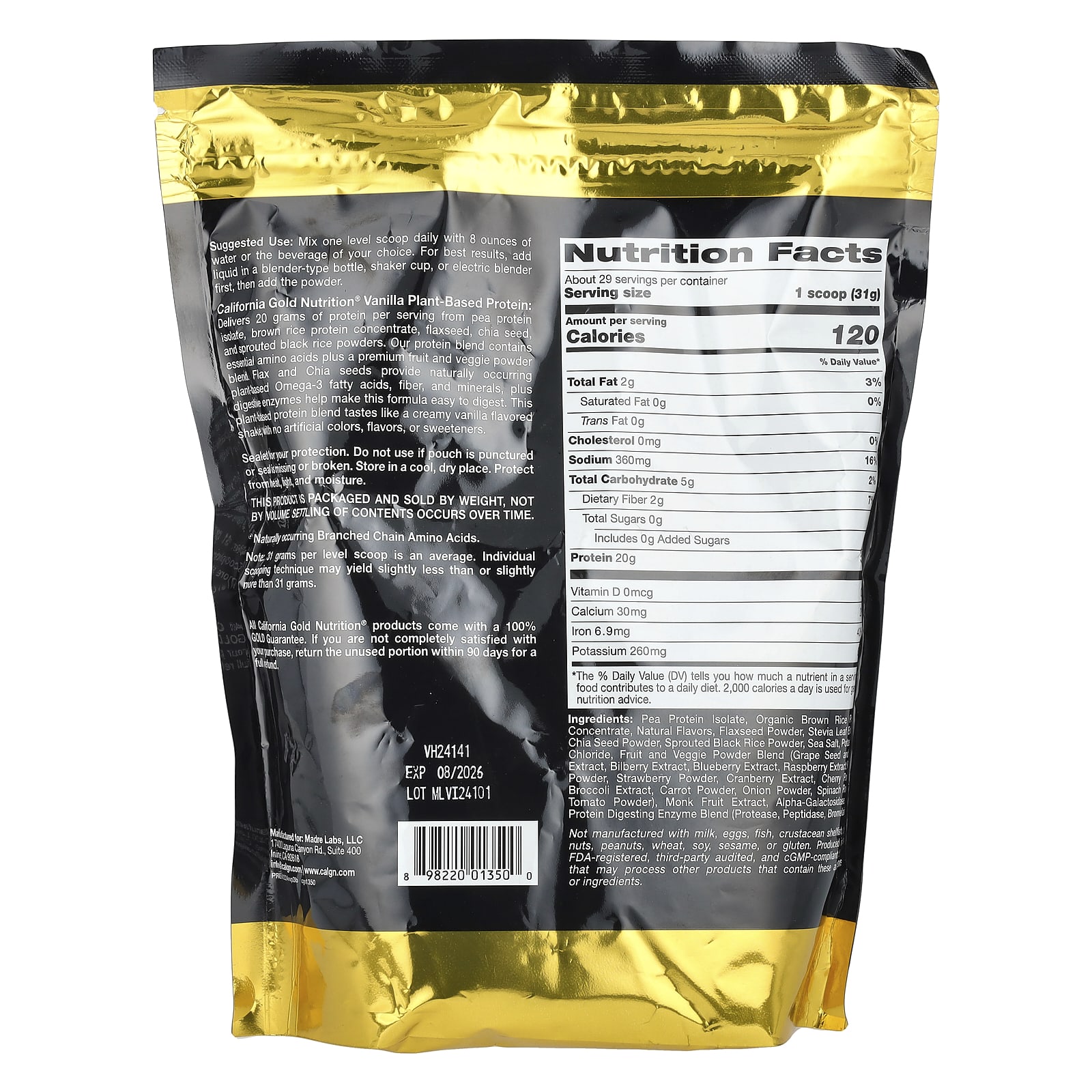 Если вы соблюдаете веганскую диету или не употребляете молочные продукты, вам может быть сложно найти добавки с высоким содержанием белка для своего рациона, особенно когда речь идёт о протеиновом порошке. California Gold Nutrition® Sport Растительный белок представляет собой протеиновый порошок, полностью полученный из растительных источников, не содержащий молочных продуктов. Используйте его, чтобы приготовить протеиновый коктейль с восхитительным ванильным вкусом в качестве идеального снека после тренировки!