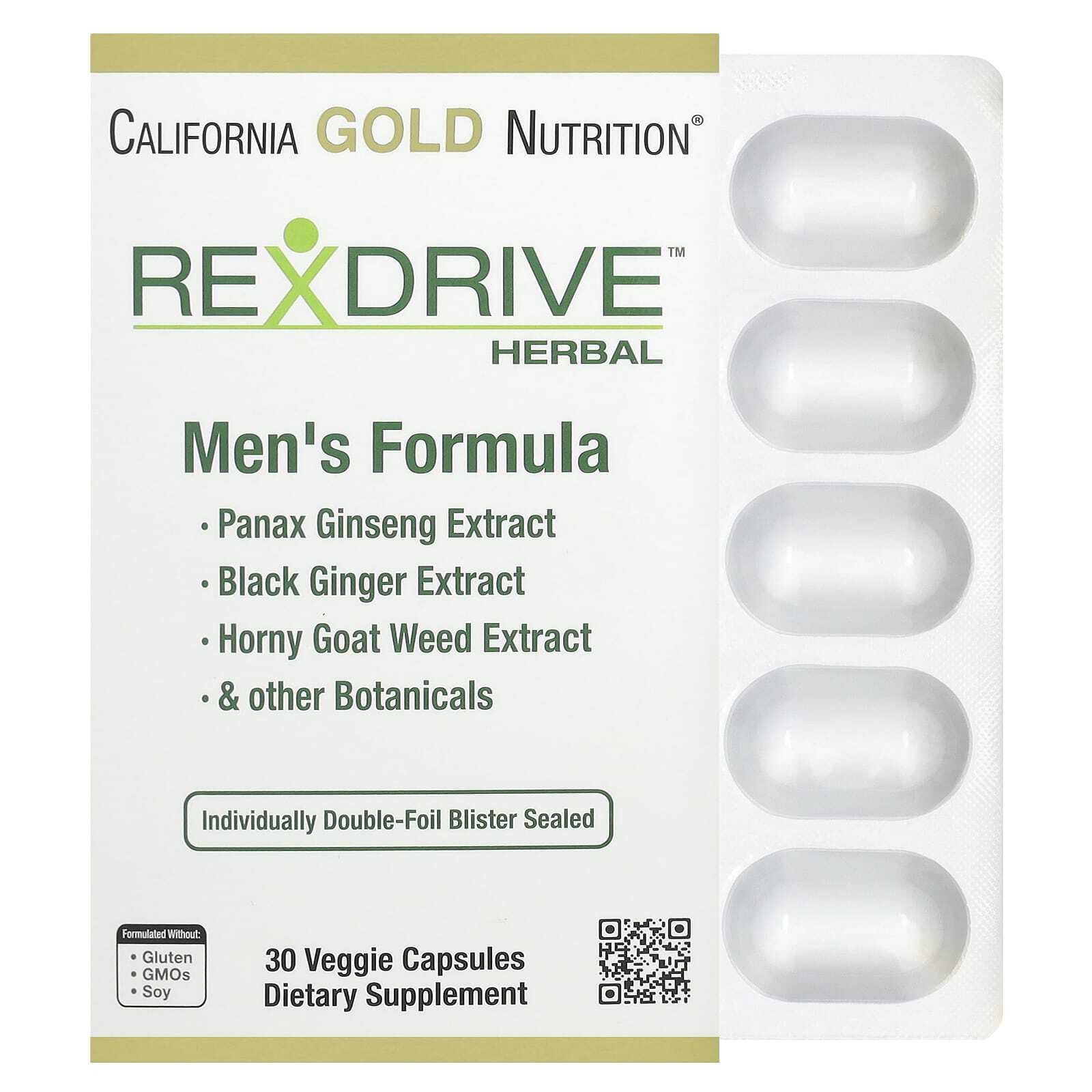 Средство для мужчин на основе трав Rexdrive от California Gold Nutrition® изготовлено из ингредиентов премиального качества, включая экстракты женьшеня обыкновенного (Panax ginseng), чёрного имбиря и горянки, а также синергические смеси полифенолов и специй. Этот продукт разработан для поддержания сексуального здоровья мужчин, повышения уровня энергии, жизненной силы и улучшения общего здоровья*.