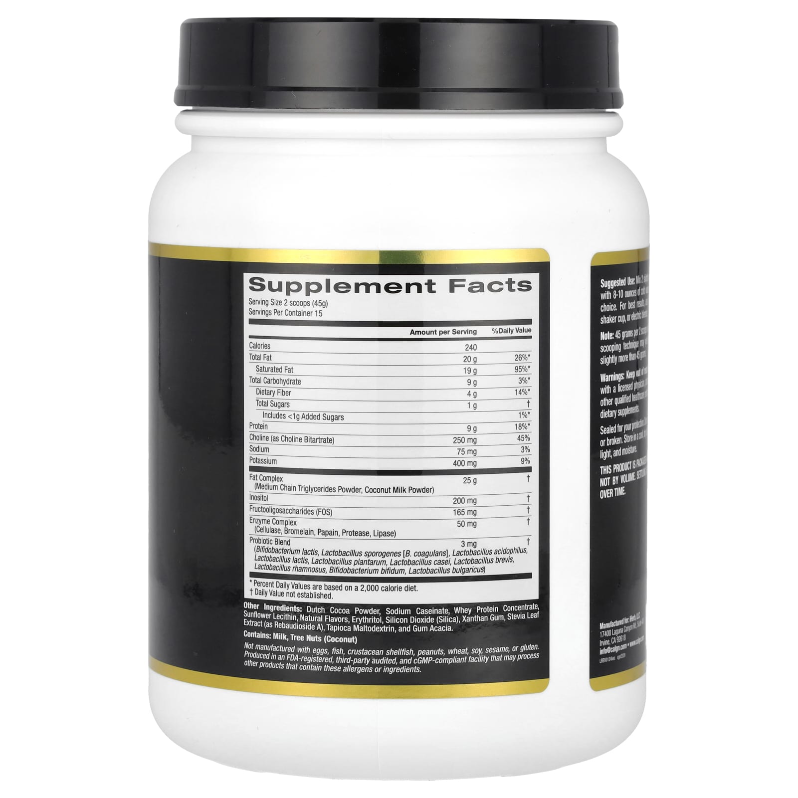 California Gold Nutrition® Keto Shake contains a protein and fat complex with a probiotic and enzyme blend optimized to support a ketogenic and low glycemic diet.*