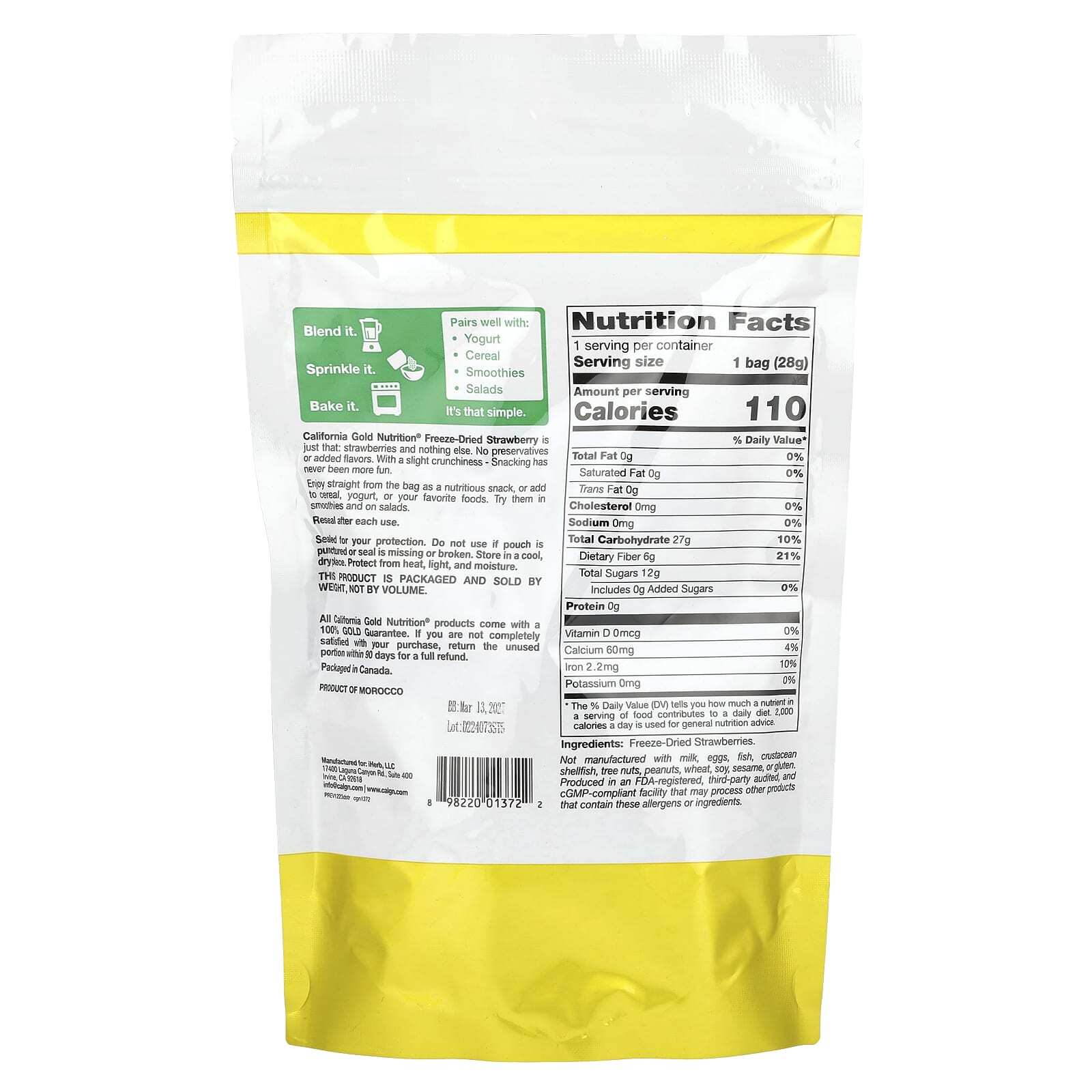California Gold Nutrition, сублимированная клубника, кусочки ягод, готовые к употреблению, 28 г (1 унция)