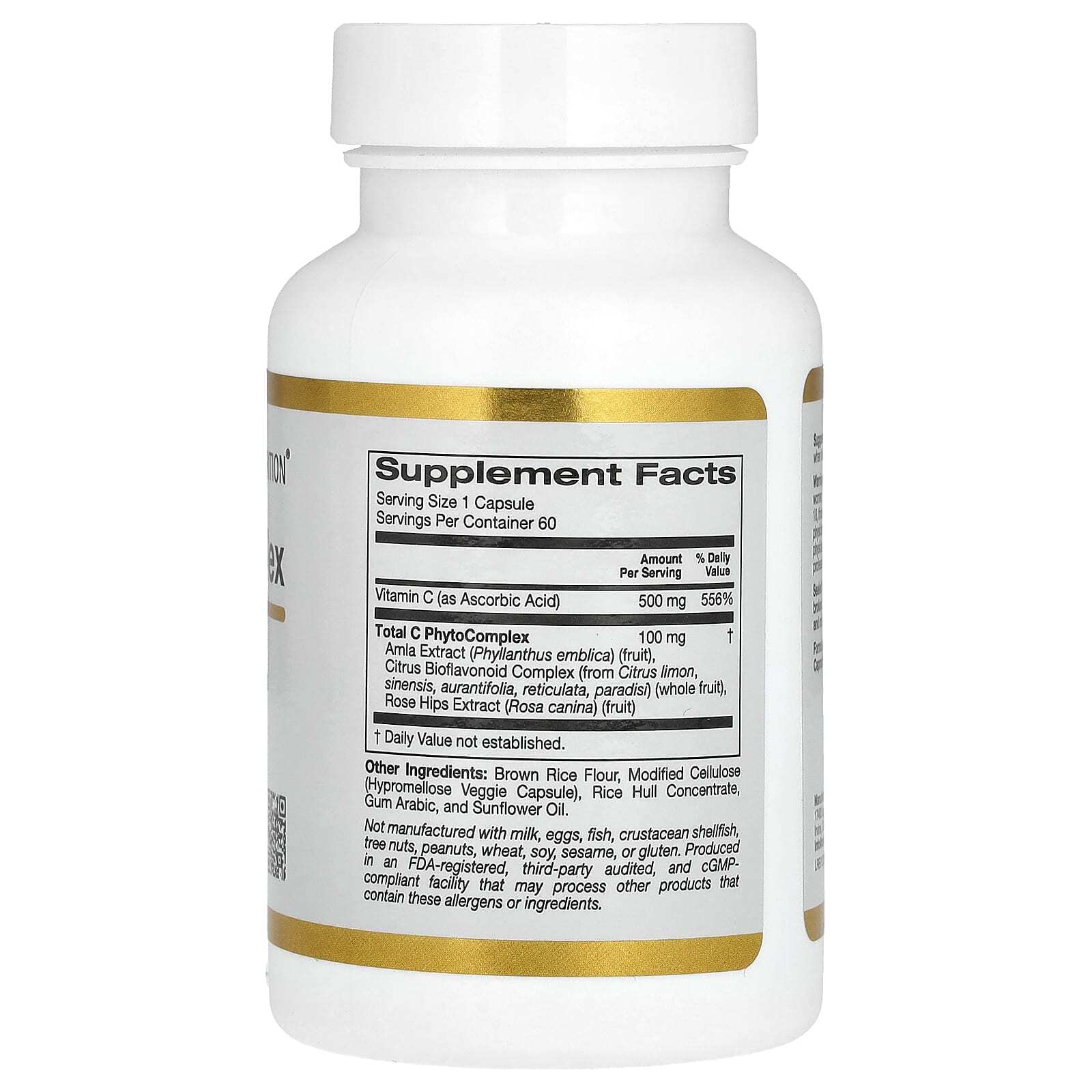 Total C от California Gold Nutrition® содержит фитокомплекс цитрусовых биофлавоноидов, в который входит Capros®, экстракт амлы премиального качества, цитрусовые биофлавоноиды и плоды шиповника.
