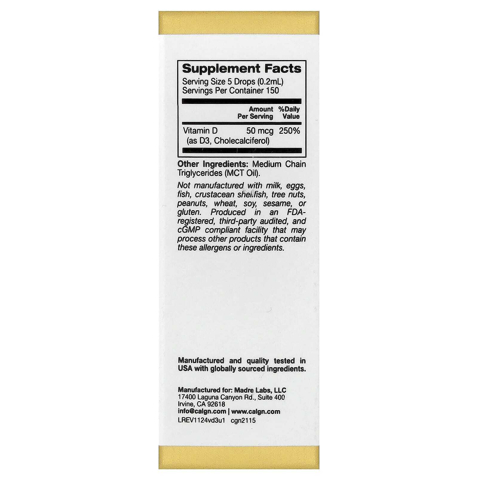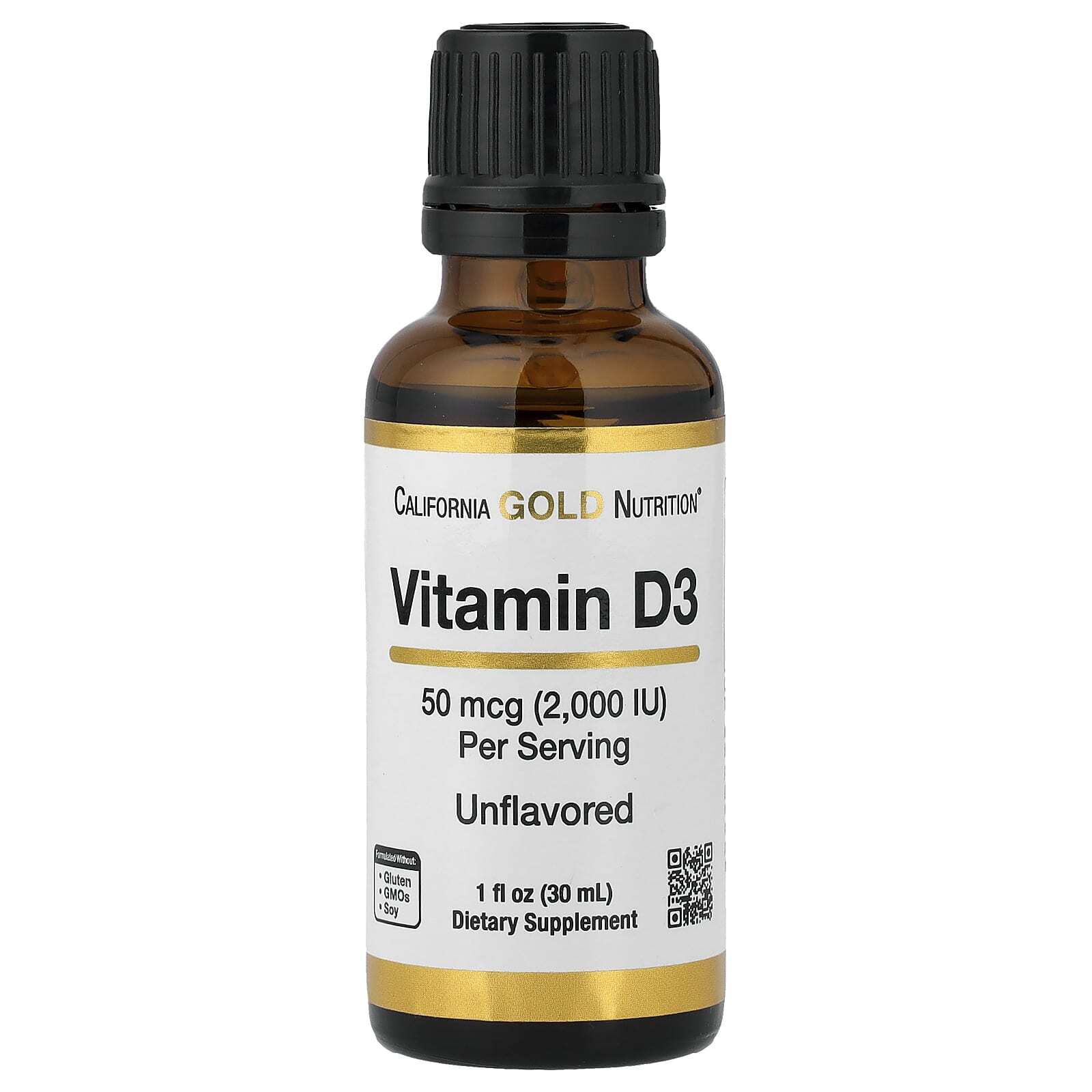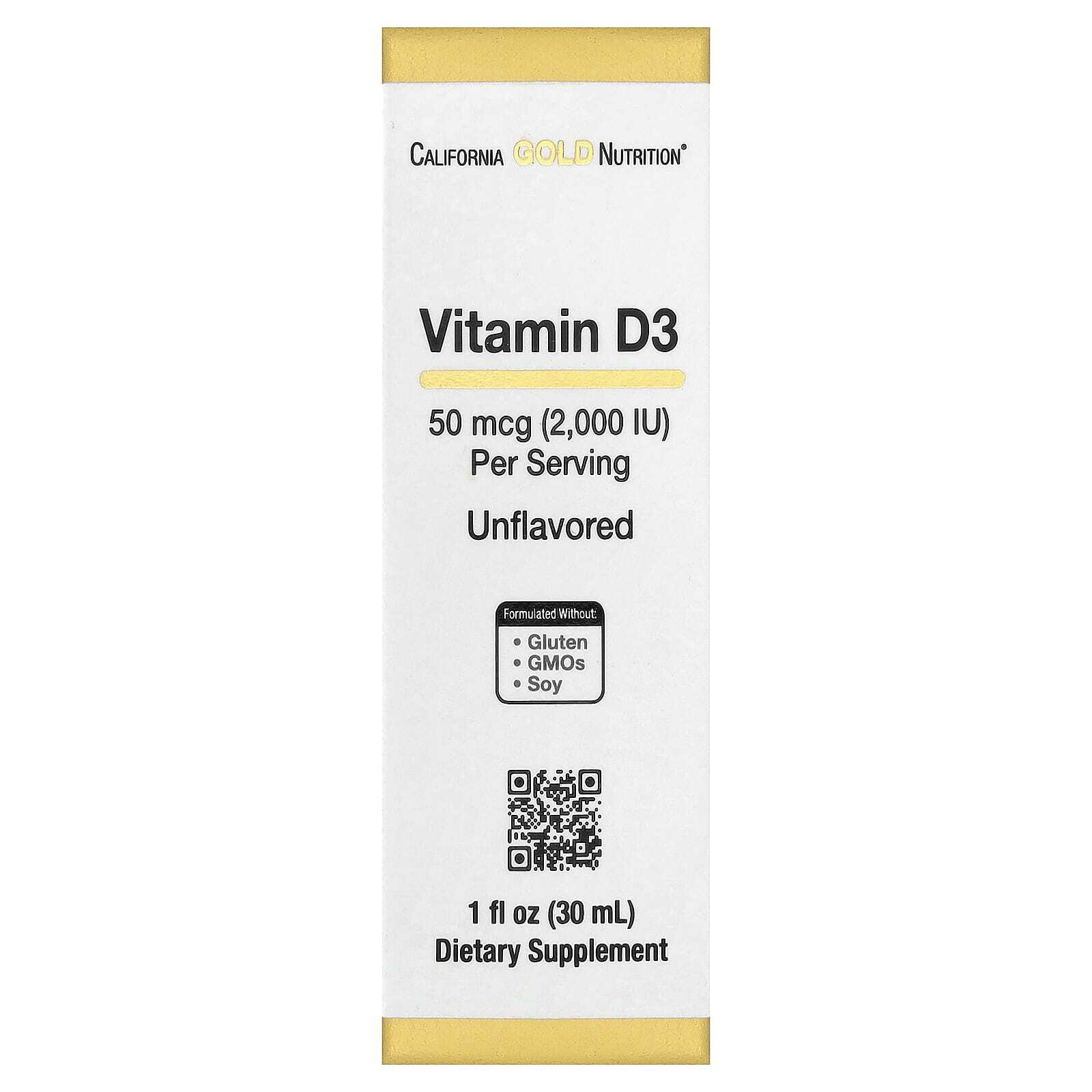 California Gold Nutrition, витамин D3, с нейтральным вкусом, 50 мкг (2000 МЕ), 30 мл (1 жидк. унция)