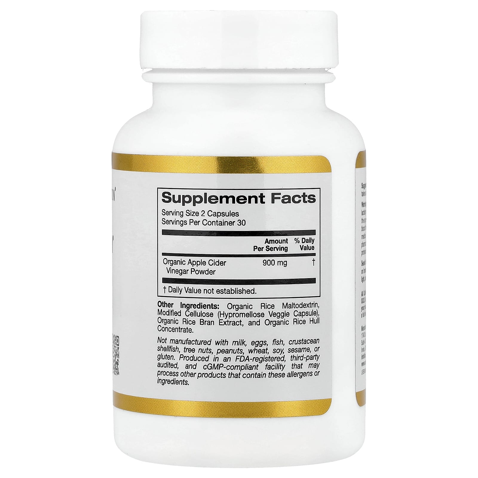 Яблочный уксус от California Gold Nutrition содержит порошок из органического яблочного уксуса в вегетарианских капсулах.