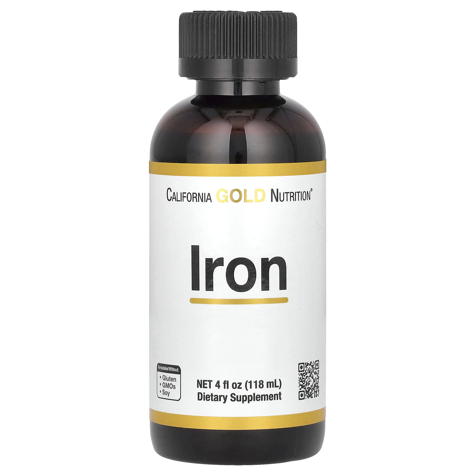 Железо от California Gold Nutritionсодержит железо в виде хелата бисглицината железа и корень щавеля курчавого (Rumex crispus) для дополнительной поддержки. Эта удобная добавка в жидкой форме позволяет легко добавить больше железа в свой рацион.