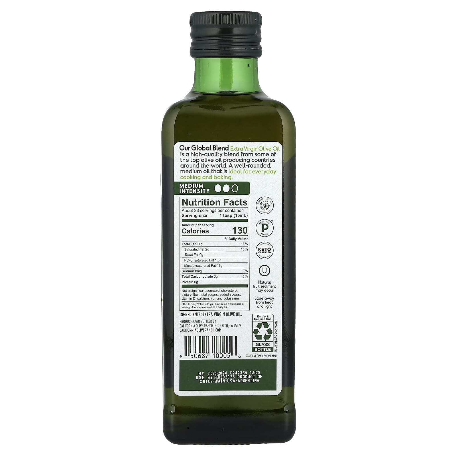 - Глобальная смесь с не менее 10% оливкового масла первого холодного отжима (California Extra Virgin)