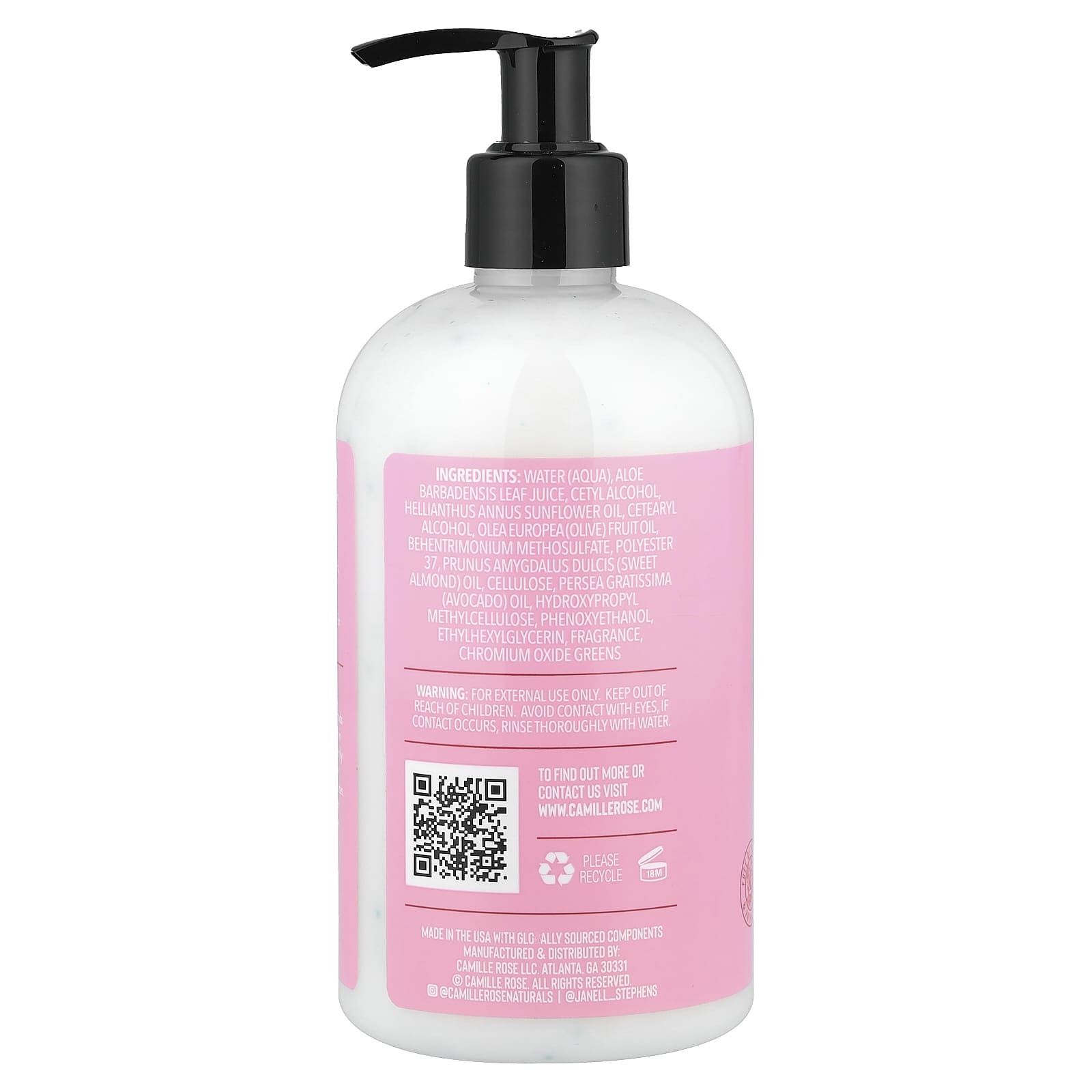 Вода (Aqua), сок из листьев алоэ вера (Aloe barbadensis), цетиловый спирт, подсолнечное масло (Helianthus annuus), цетеариловый спирт, оливковое масло (Olea europaea), бегентримония метосульфат, полиэстер 37, масло сладкого миндаля (Prunus amygdalus dulcis), целлюлоза, масло авокадо (Persea gratissima), гидроксипропилметилцеллюлоза, феноксиэтанол, этилгексилглицерин, отдушка, оксид хрома и зелень.