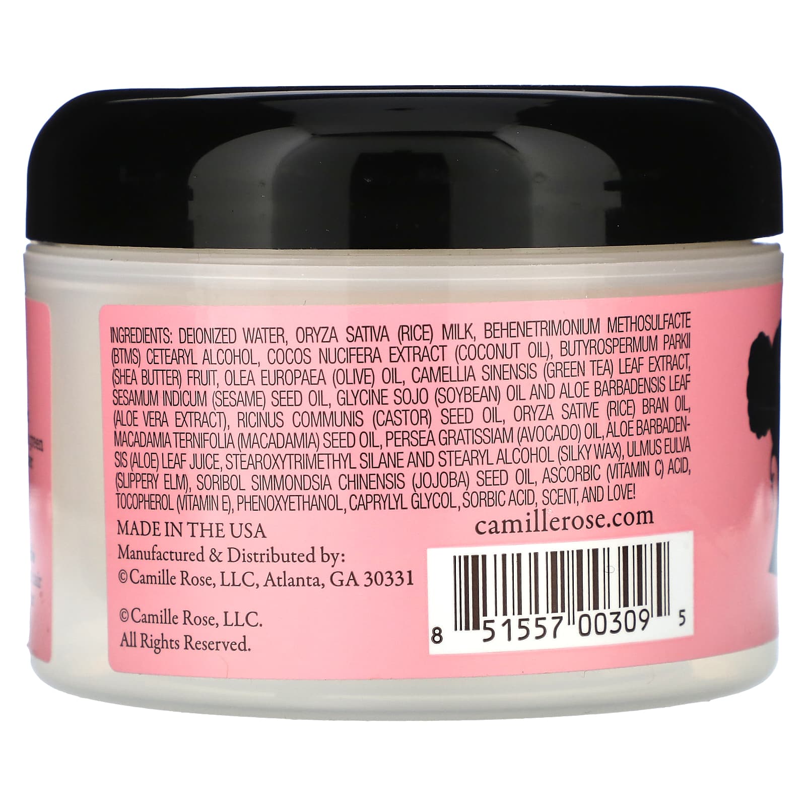 Деионизированная вода, рисовое молоко (Oryza sativa), бегентримония метосульфат (BTMS), цетеариловый спирт, экстракт кокосового масла (Cocos nucifera), масло ши (Butyrospermum parkii), оливковое масло (Olea europaea), экстракт листьев зеленого чая (Camellia sinensis), кунжутное масло (Sesamum indicum), масло сои (Glycine sojo) и экстракт листьев алоэ вера (Aloe barbadensis), касторовое масло (Ricinus communis), рисовое масло (Oryza sative), масло из семян макадамии (Macadamia ternifolia), масло авокадо (Persea gratissima), сок листьев алоэ вера (Aloe barbadensis), стеарокситриметилсилан и стеариловый спирт (шелковистый воск), вяз скользкий (Ulmus eulva), сорбитол, масло семян жожоба (Simmondsia chinensis), аскорбиновая (витамин C) кислота, токоферол (витамин Е), феноксиэтанол, каприлилгликоль, сорбиновая кислота, отдушка, и любовь!
