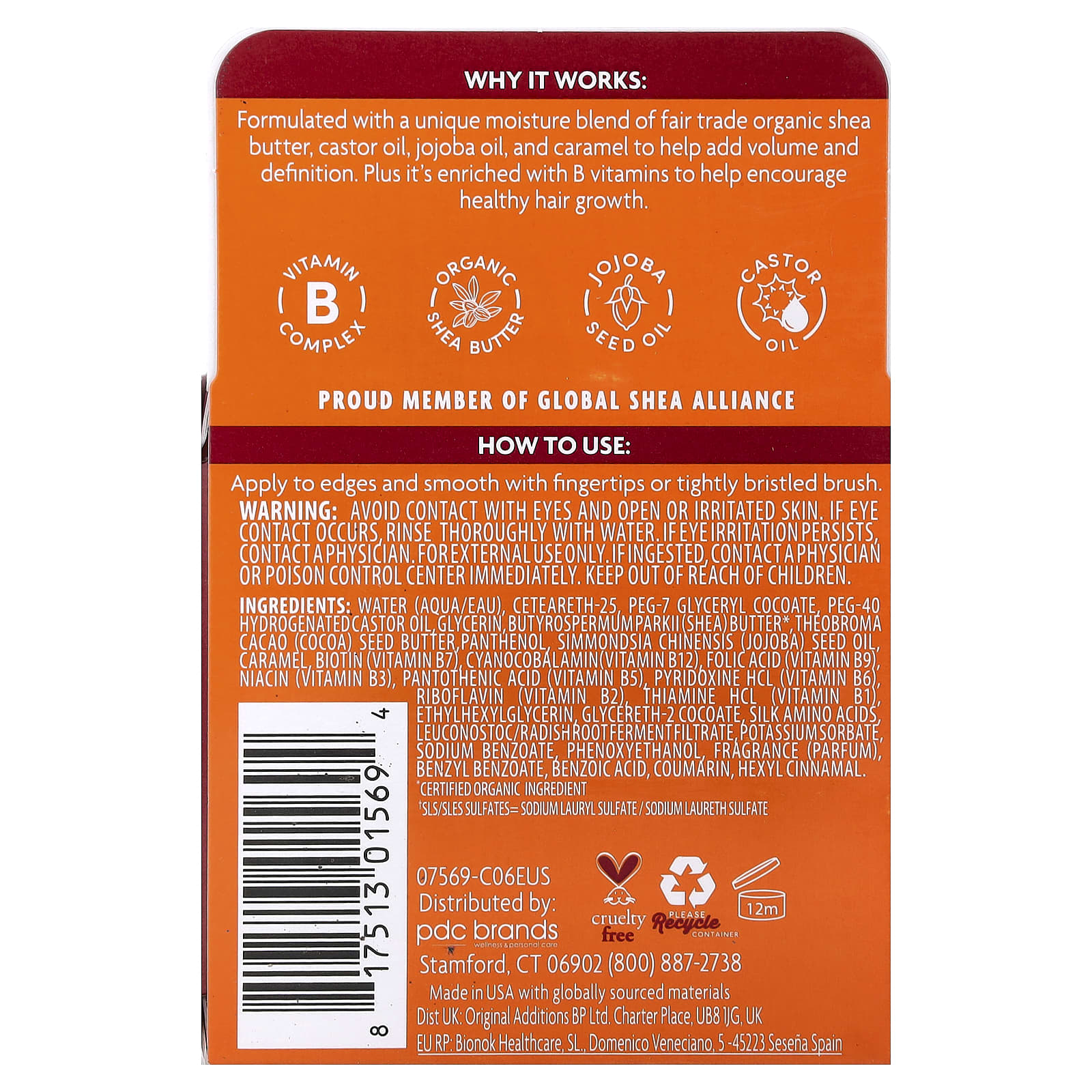 Содержит уникальную увлажняющую смесь из органического масла ши, приобретенного на основе принципов справедливой торговли, касторового масла, масла жожоба и карамели, которые помогают придать волосам объем и четкую форму. Кроме того, он обогащен витаминами группы B, что способствует здоровому росту волос.