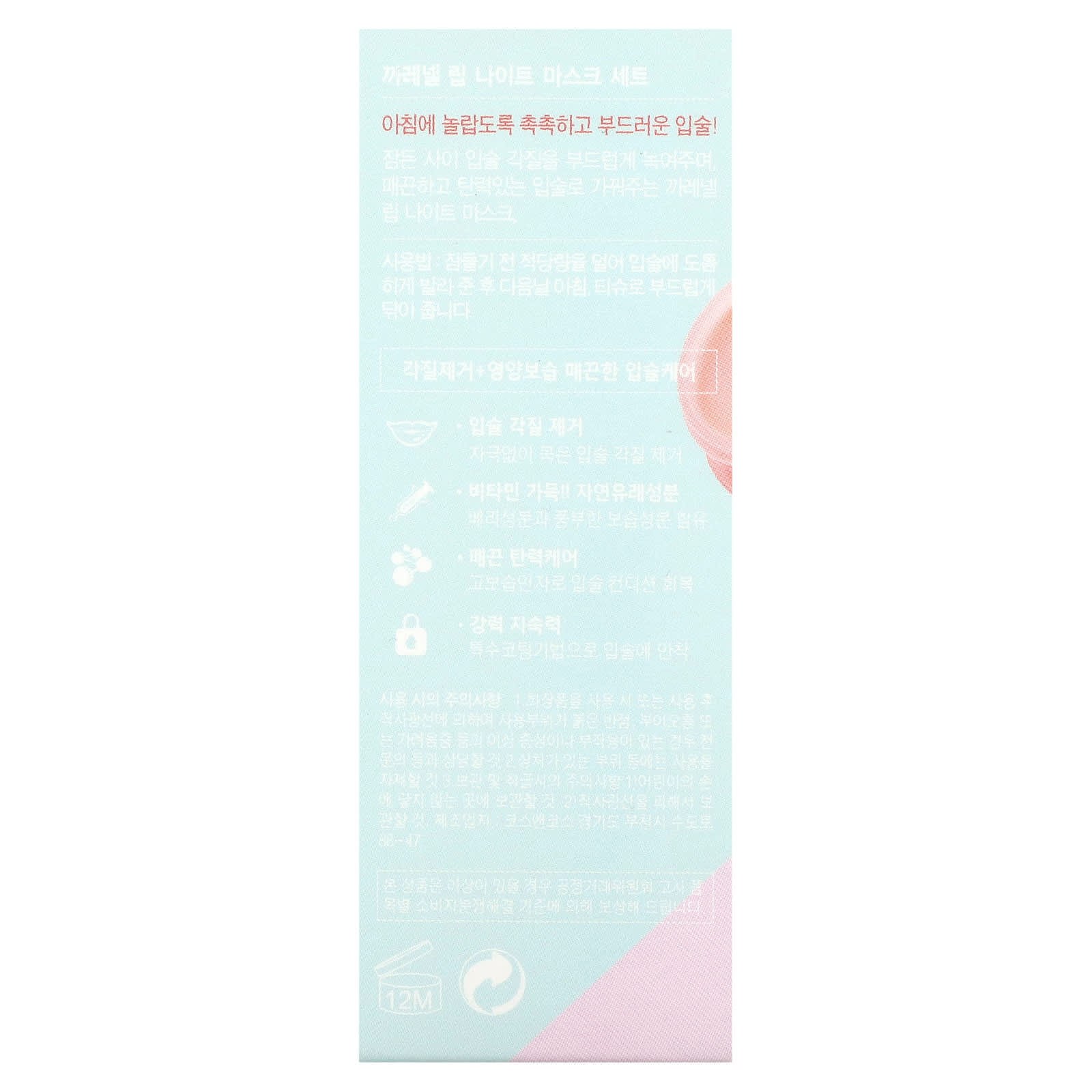 Care:Nel, ночная маска для губ, ягода, 3 шт. по 5 г