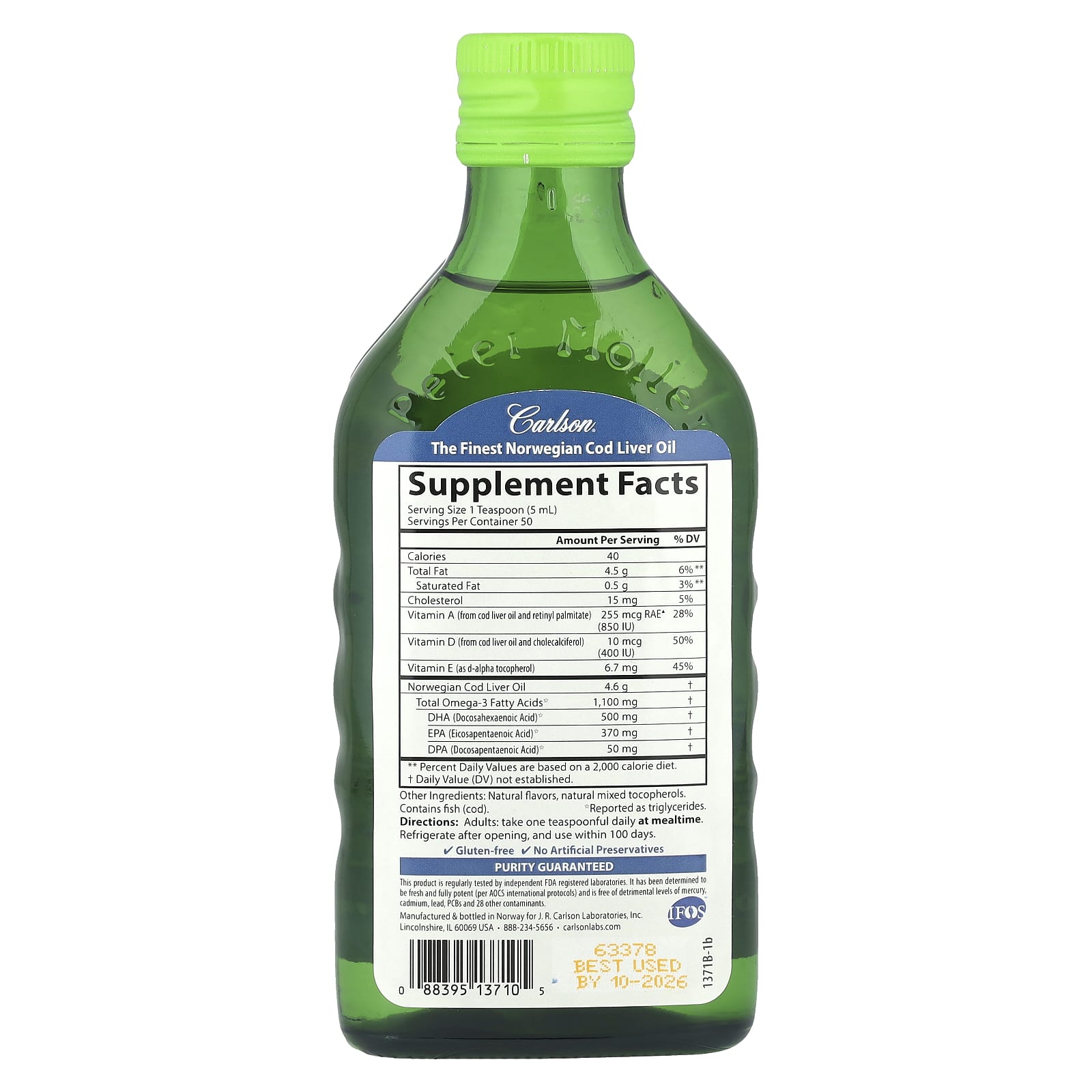 Этот продукт регулярно проходит проверки в независимых лабораториях, зарегистрированных Управлением по контролю качества пищевых продуктов и лекарственных средств США (FDA). Гарантируется свежесть и максимальная эффективность (согласно международным протоколам AOCS), а также отсутствие вредных концентраций ртути, кадмия, свинца, ПХБ и 28 других загрязняющих веществ.