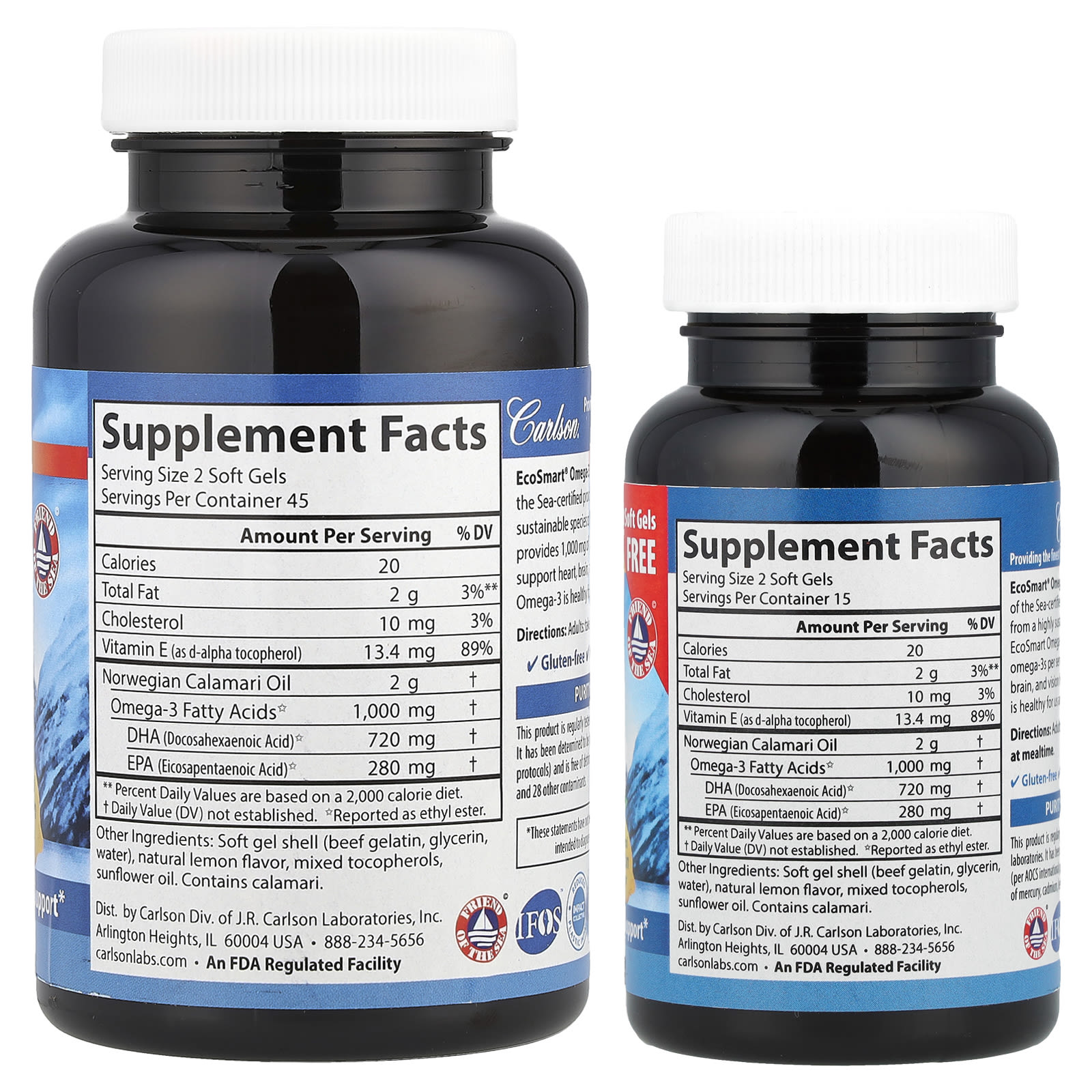Омега-3 EcoSmart® — это экологически чистый продукт с сертификацией Friend of the Sea, который производится из экологически чистых видов кальмаров. В одной порции омега-3 EcoSmart содержится 1000 мг омега-3 кислот, которые поддерживают здоровье сердца и мозга, а также остроту зрения. Добавка омега-3 EcoSmart полезна для здоровья и не вредит нашей Земле.