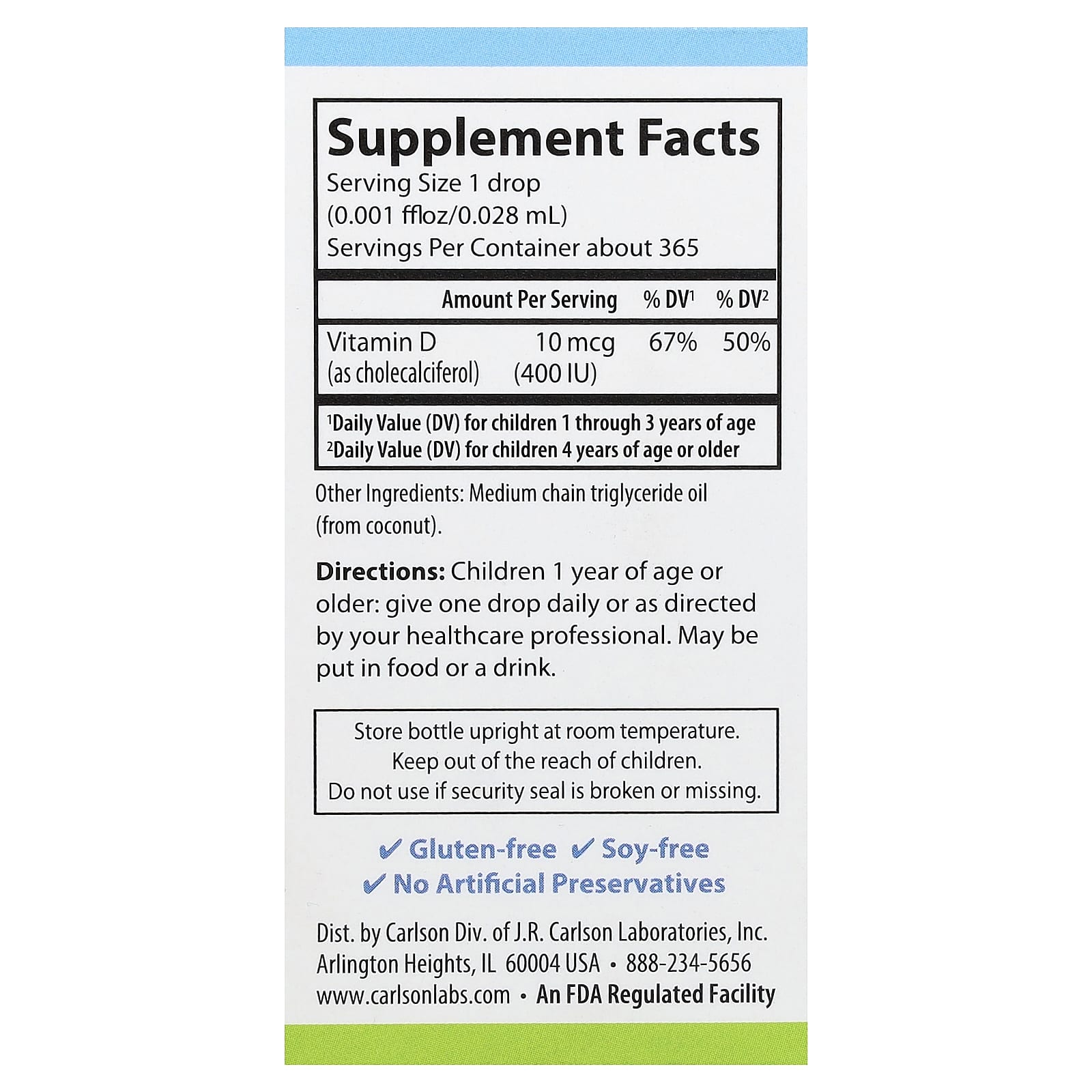 - 400 МЕ (10 мкг) в каждой капле