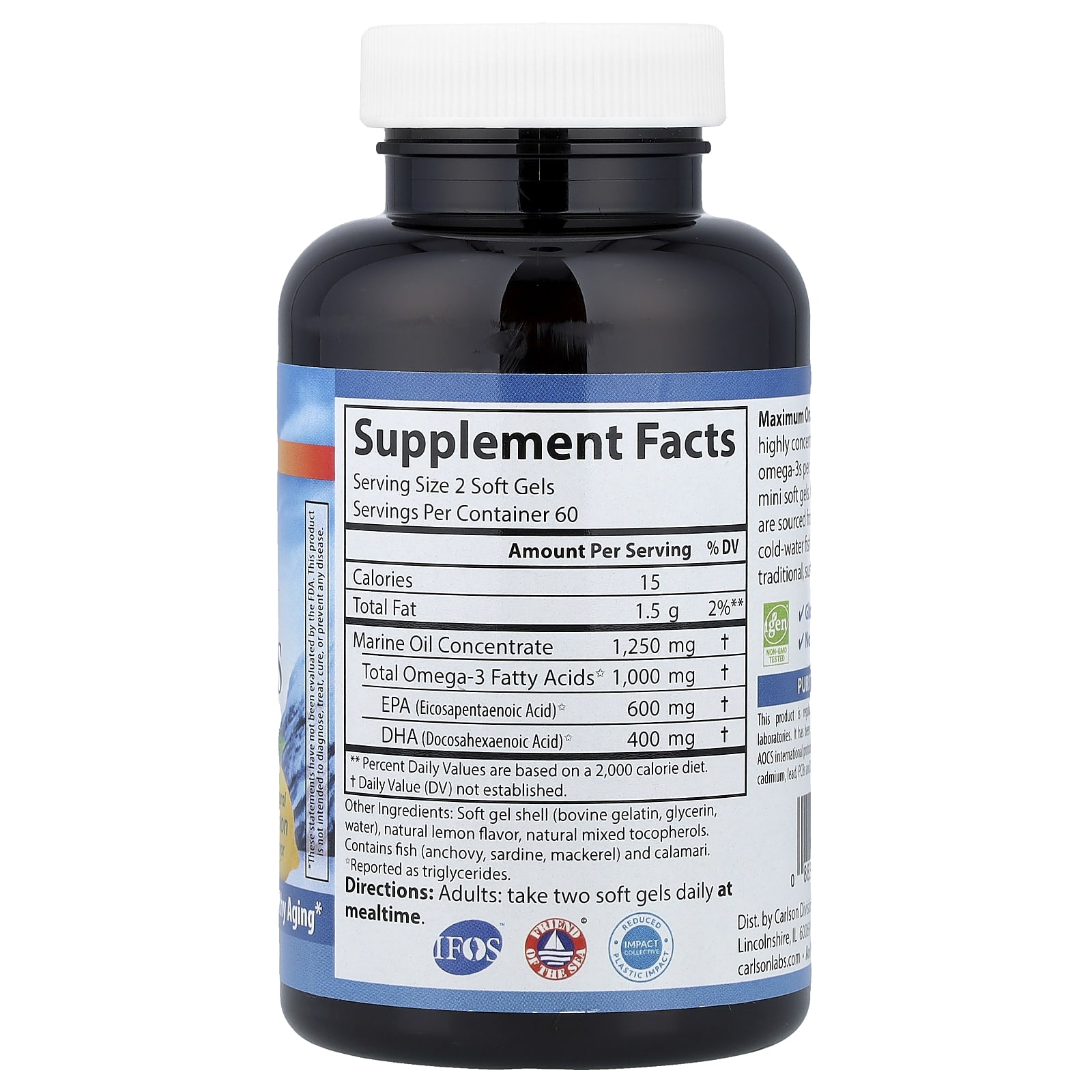 Этот продукт регулярно проходит проверки в независимых лабораториях, зарегистрированных Управлением по контролю качества пищевых продуктов и лекарственных препаратов США (FDA). Его свежесть и максимальная эффективность (согласно международным протоколам AOCS) и отсутствие вредных концентраций ртути, кадмия, свинца, ПХБ и 28 других загрязняющих веществ гарантированы..
