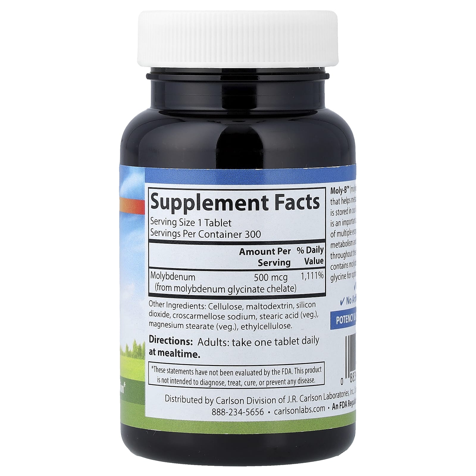 Carlson, Moly-B™, молибден в хелатной форме, 300 вегетарианских таблеток (500 мкг в 1 таблетке)