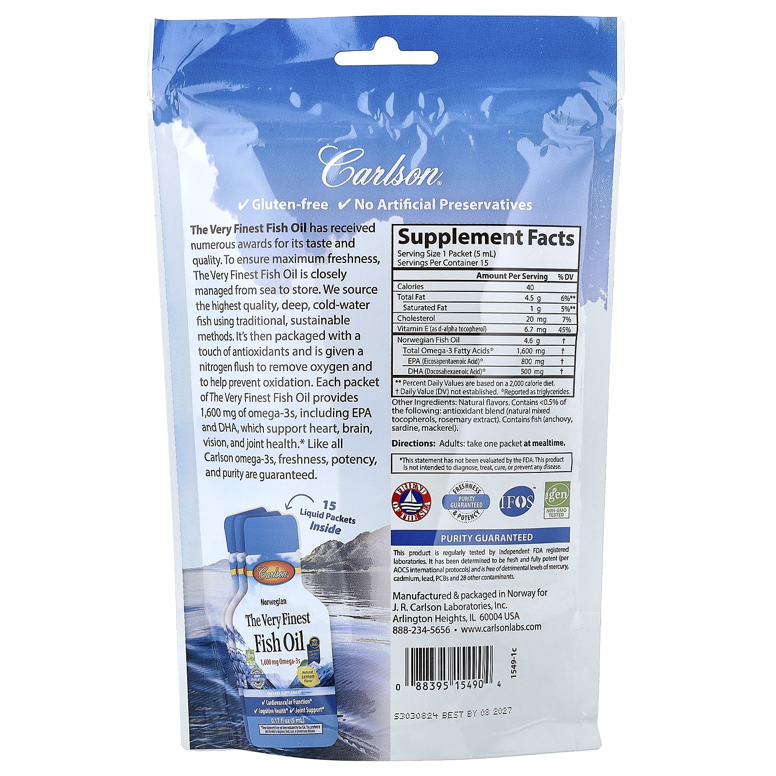 Самый лучший рыбий жир получил множество наград за вкус и качество.Чтобы обеспечить максимальную свежесть, самый лучший рыбий жир проходит тщательный контроль качества на всех этапах производства.Мы вылавливаем холодноводную рыбу самого высокого качества на большой глубине, используя традиционные экологически безопасные методы.Он содержит немного антиоксидантов и промывается азотом для удаления кислорода и предотвращения окисления.Каждый пакетик самого лучшего рыбьего жира содержит 1600 мг омега-3, включая ЭПК и ДГК, которые поддерживают здоровье сердца, мозга, зрения и суставов.Как и все продукты омега-3 от Carlson, гарантируется свежесть, эффективность и чистота.