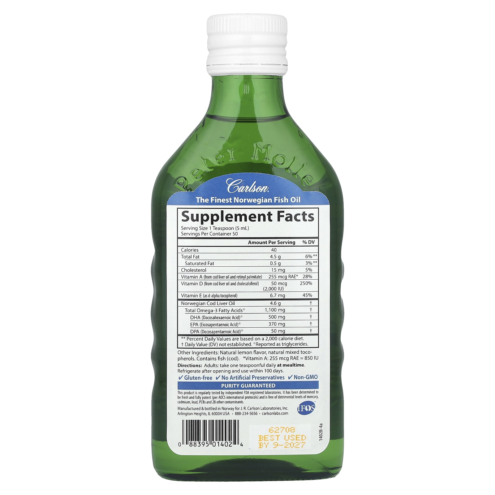 - Соответствует международному стандарту рыбьего жира (IFOS)
