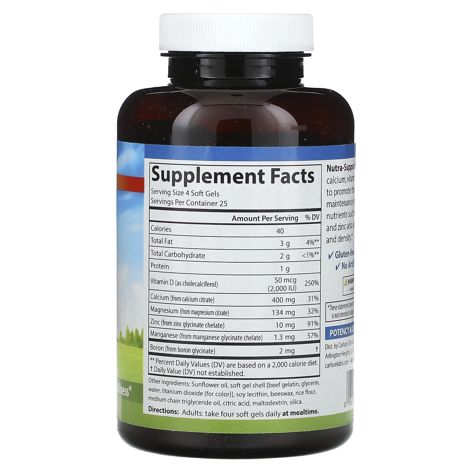 Nutra-Support Bone® содержит кальций, витамин D3 и магний, способствующие формированию и поддержанию крепких костей. Микроэлементы, такие как марганец, бор и цинк, также способствуют формированию и плотности костей.