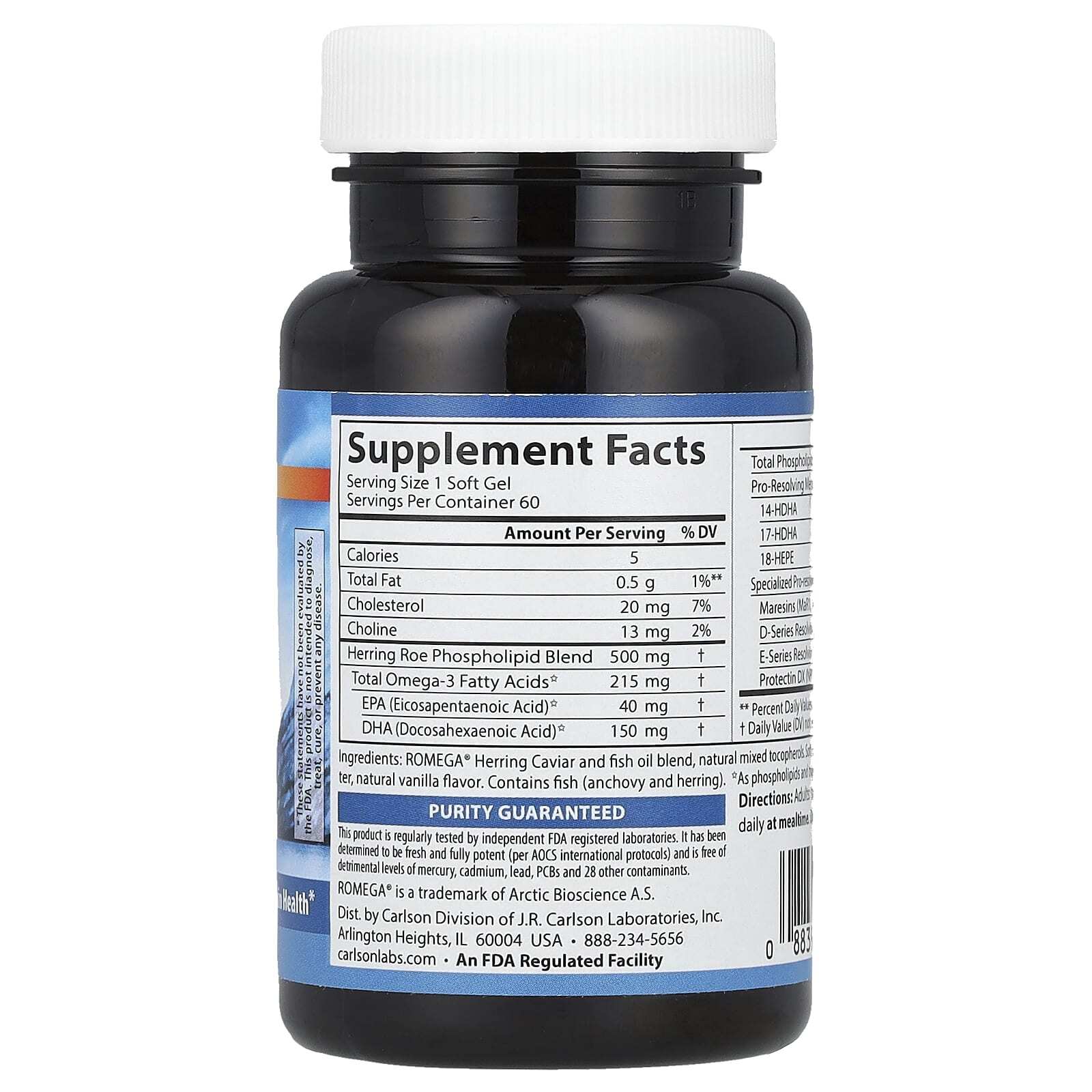 СЗМ Caviar - это смесь экстракта икры арктической сельди, полученного из экологически чистых источников, с концентратом рыбьего жира, который содержит фосфолипиды природного происхождения, специализированные медиаторы, способствующие рассасыванию, и омега-3. Полезные омега-3 ЭПК и ДГК поддерживают здоровье сердца, мозга, зрения, суставов и иммунной системы. СПМ поддерживают защитную систему нашего организма и помогают естественному разрешению воспалительной реакции. Поскольку многие из нас могут не получать достаточное количество омега-3 только с пищей и могут иметь недостаточную выработку SPM, добавка может быть отличным вариантом. Как и все продукты Carlson, омега-3 с SPM проверяются на свежесть, эффективность и чистоту в зарегистрированной FDA лаборатории.