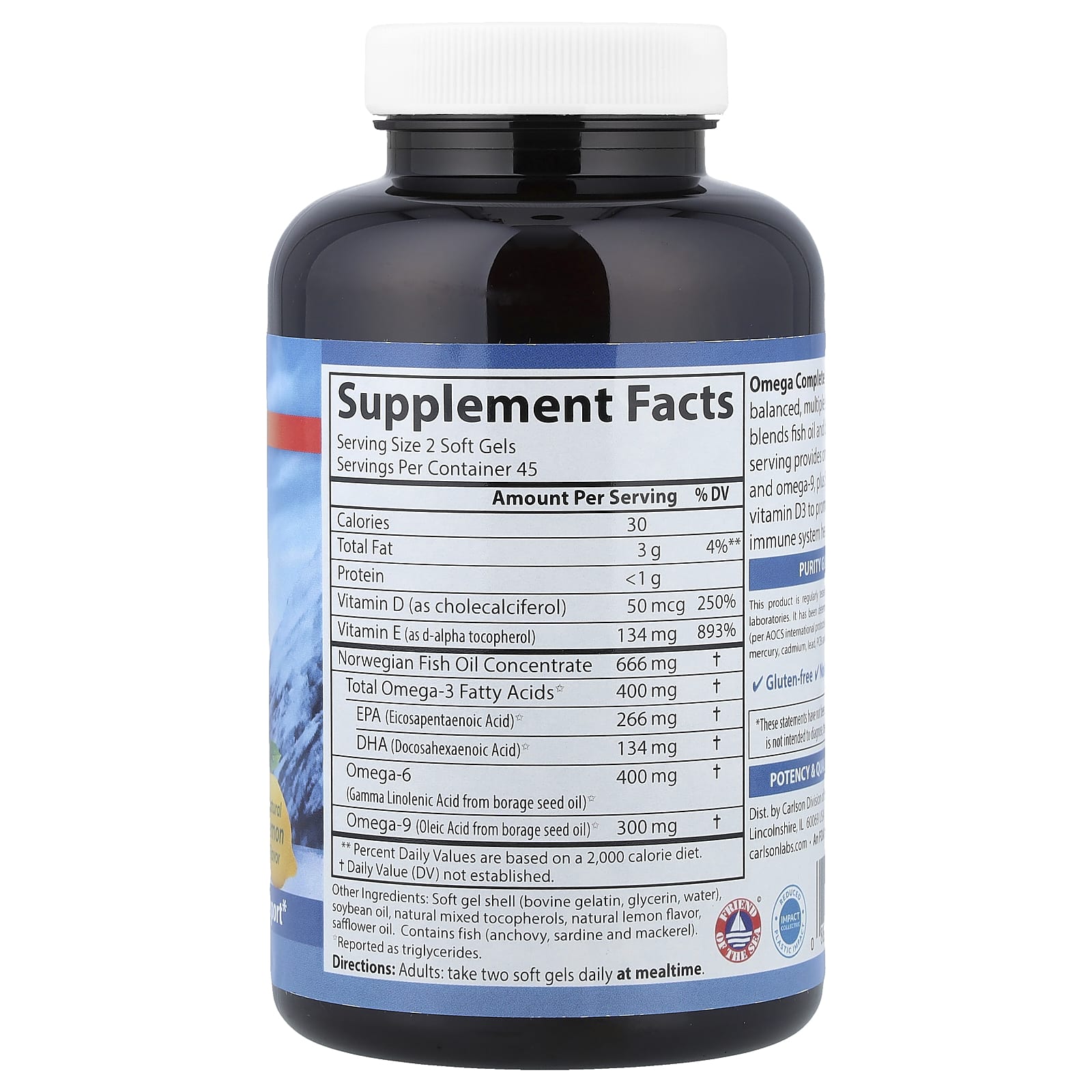 Omega Complete Gems — сбалансированное средство с множеством омега-жирных кислот, в котором содержатся рыбий жир и масло семян бурачника. Каждая порция содержит омега-3, омега-6 и омега-9, а также 50 мкг (2000 МЕ) витамина D3 для укрепления здоровья сердца, суставов и иммунной системы.