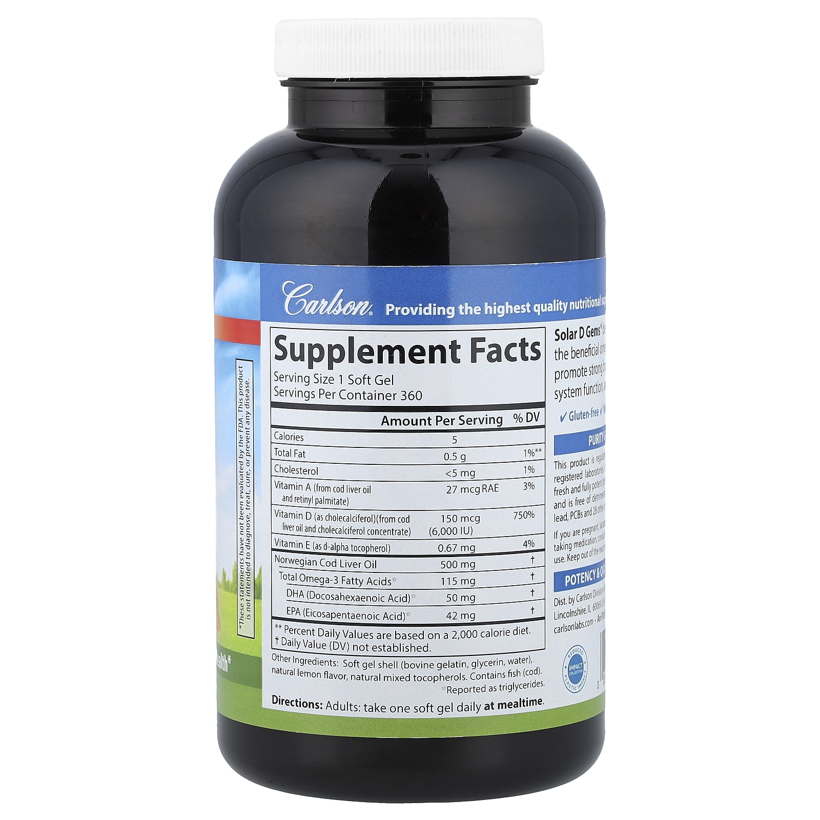 Solar D Gems® сочетает в себе витамин D3 с полезными омега-3 (ЭПК и ДГК) для укрепления костей, нормальной работы иммунной системы и здоровья сердца.