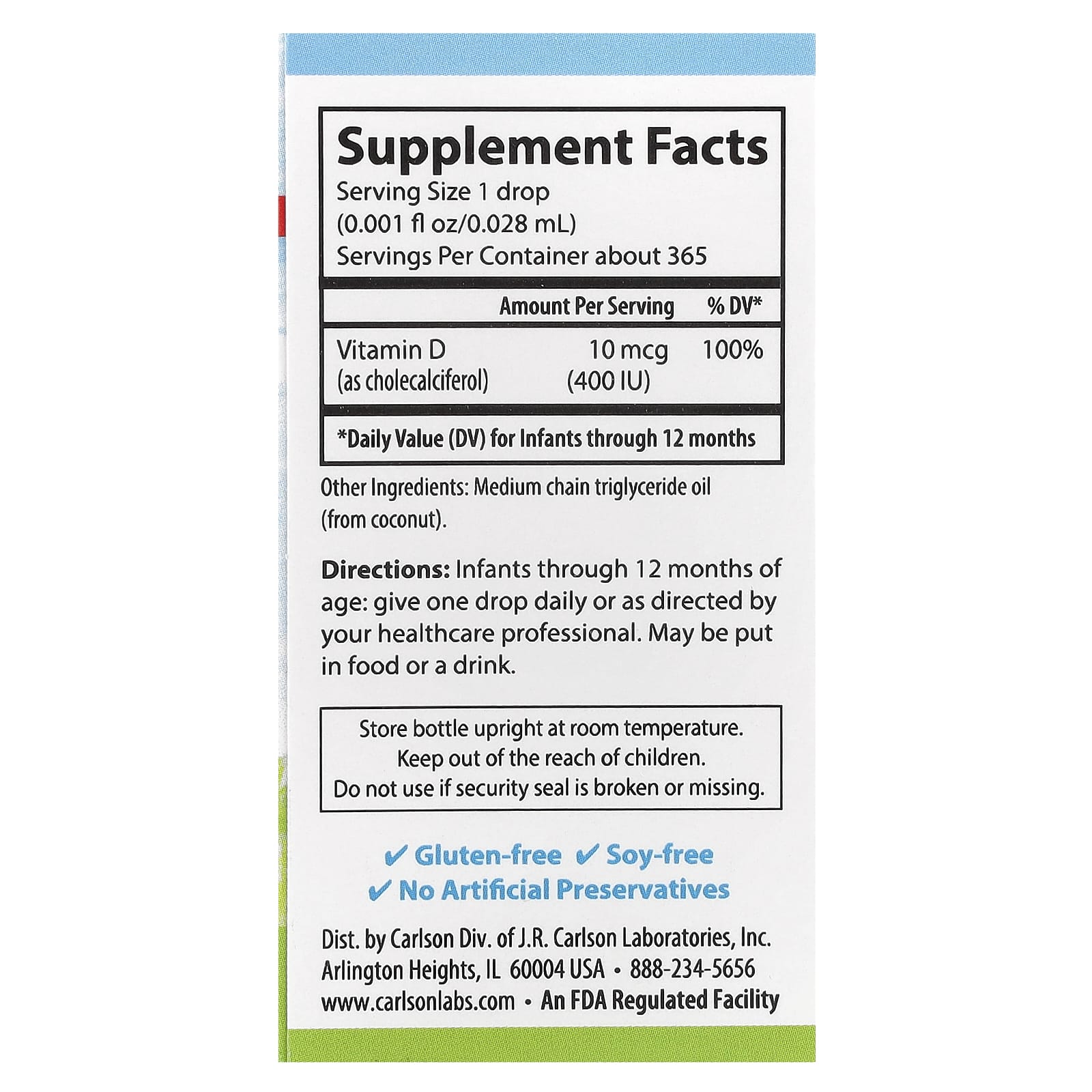 Витамин D3 играет важную роль для здоровья в целом. Однако для его выработки необходим солнечный свет, который не все получают в достаточном количестве. Baby's Super Daily® D3 от Carlson предлагает безопасный и удобный способ получения витамина D3. Одна капля Baby’s Super Daily® D3 от Carlson содержит 400 МЕ (10 мкг) концентрированного жидкого витамина D3. Именно такую дозировку рекомендует Американская академия педиатрии.
