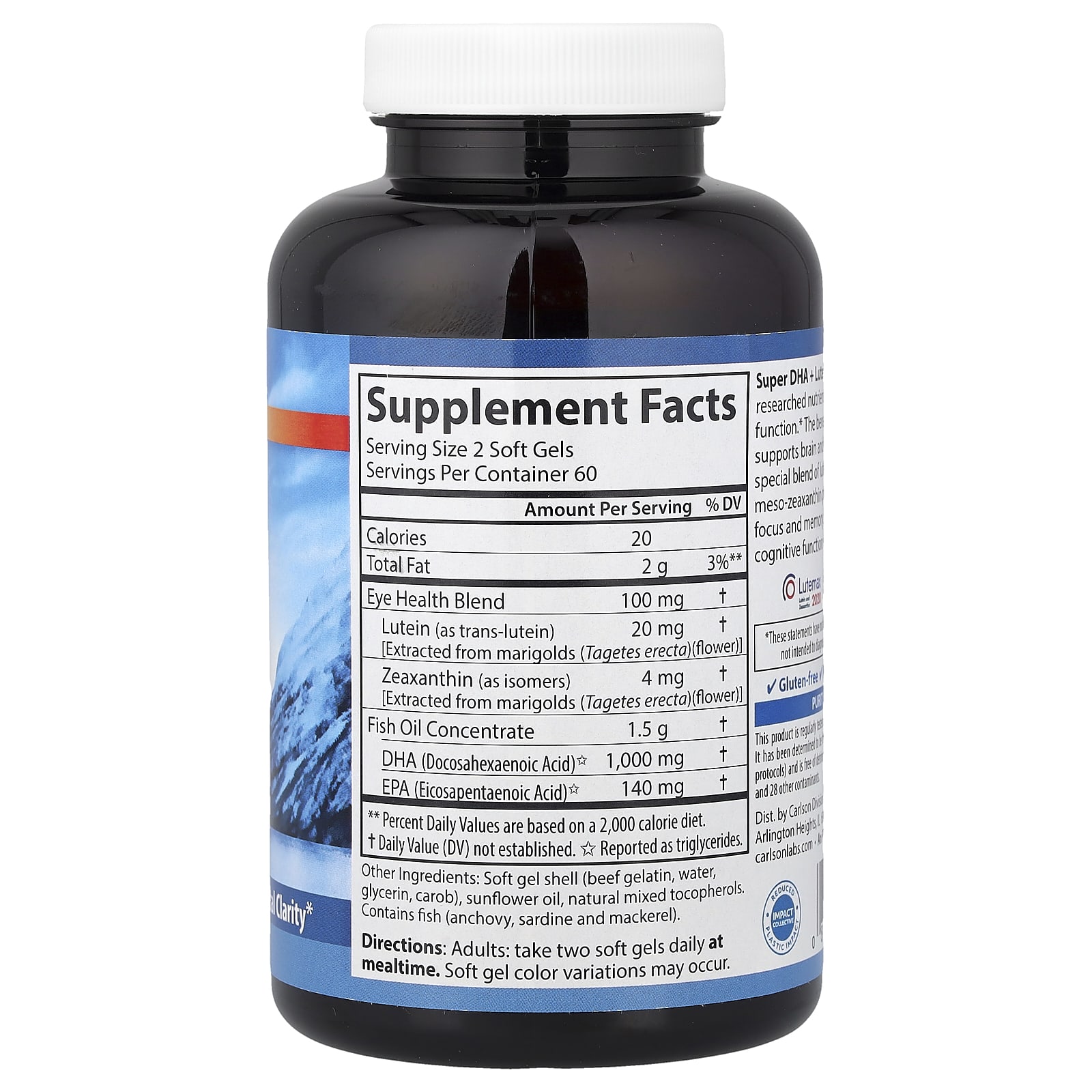 - 1000 мг ДГК + 20 мг лютеина