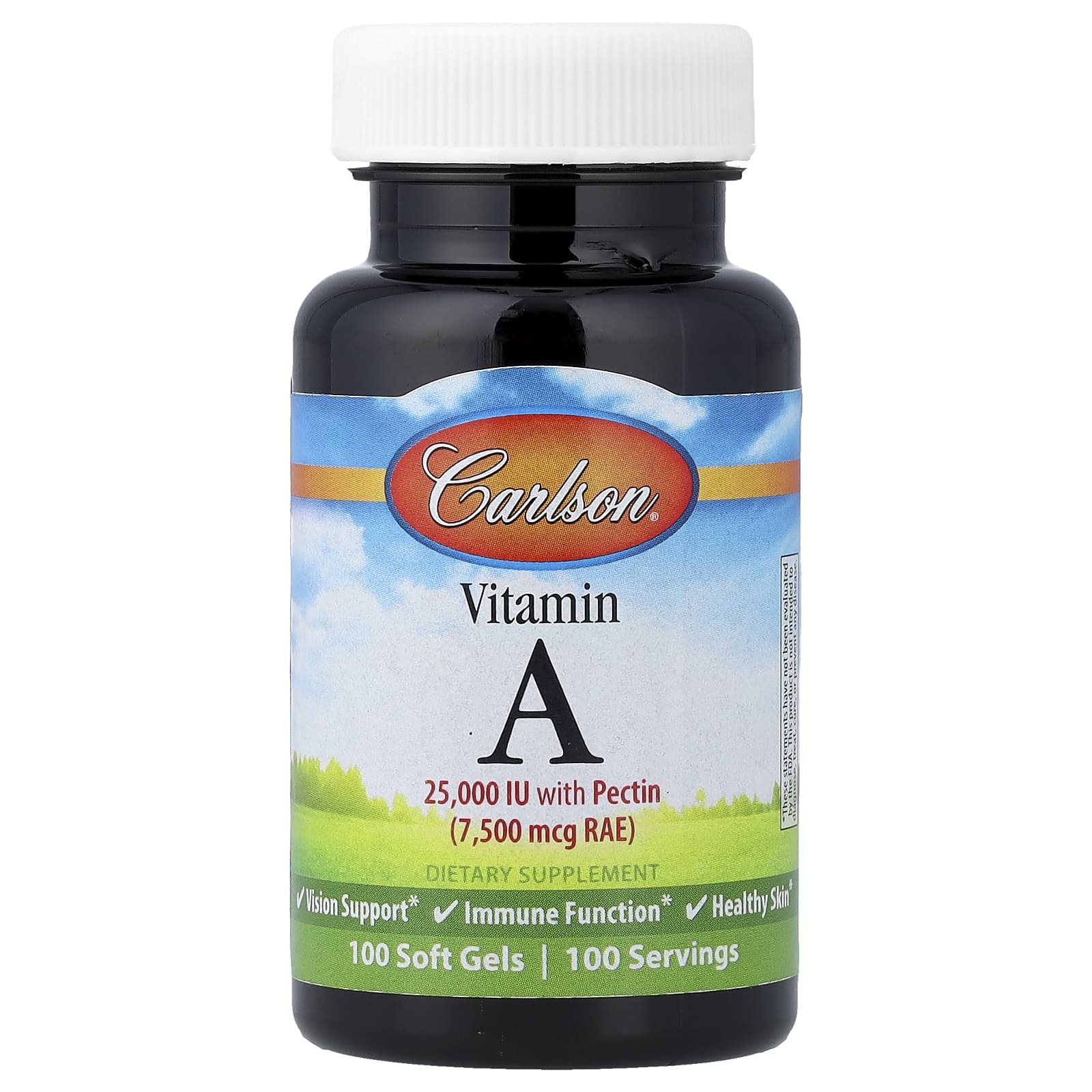 Carlson, витамин A, 7500 мкг RAE (25 000 МЕ), 100 мягких таблеток