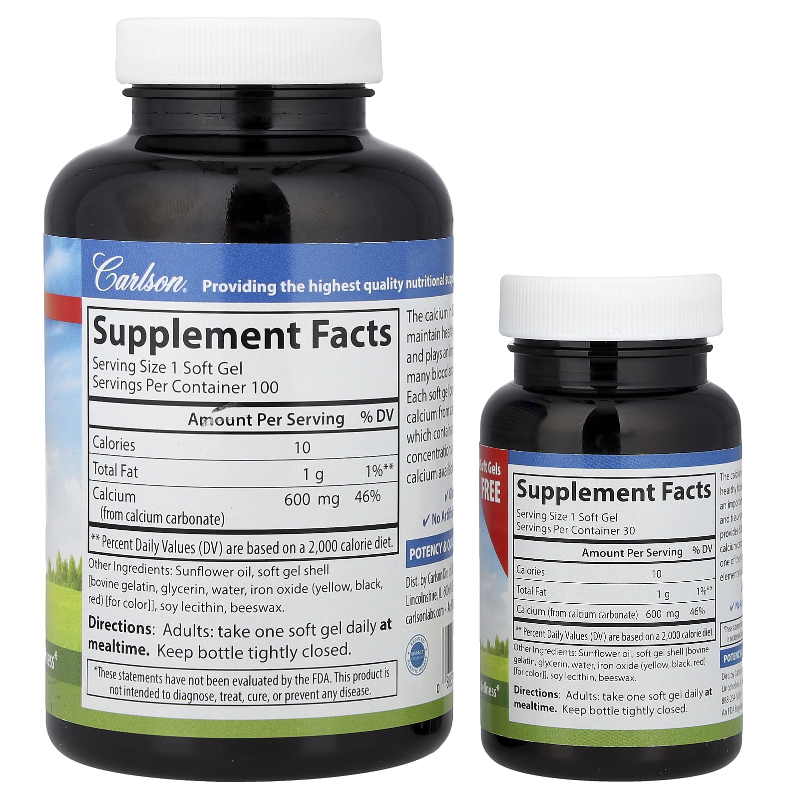Carlson, Cal-600, с жидким наполнителем, 600 мг, 100 + 30 капсул